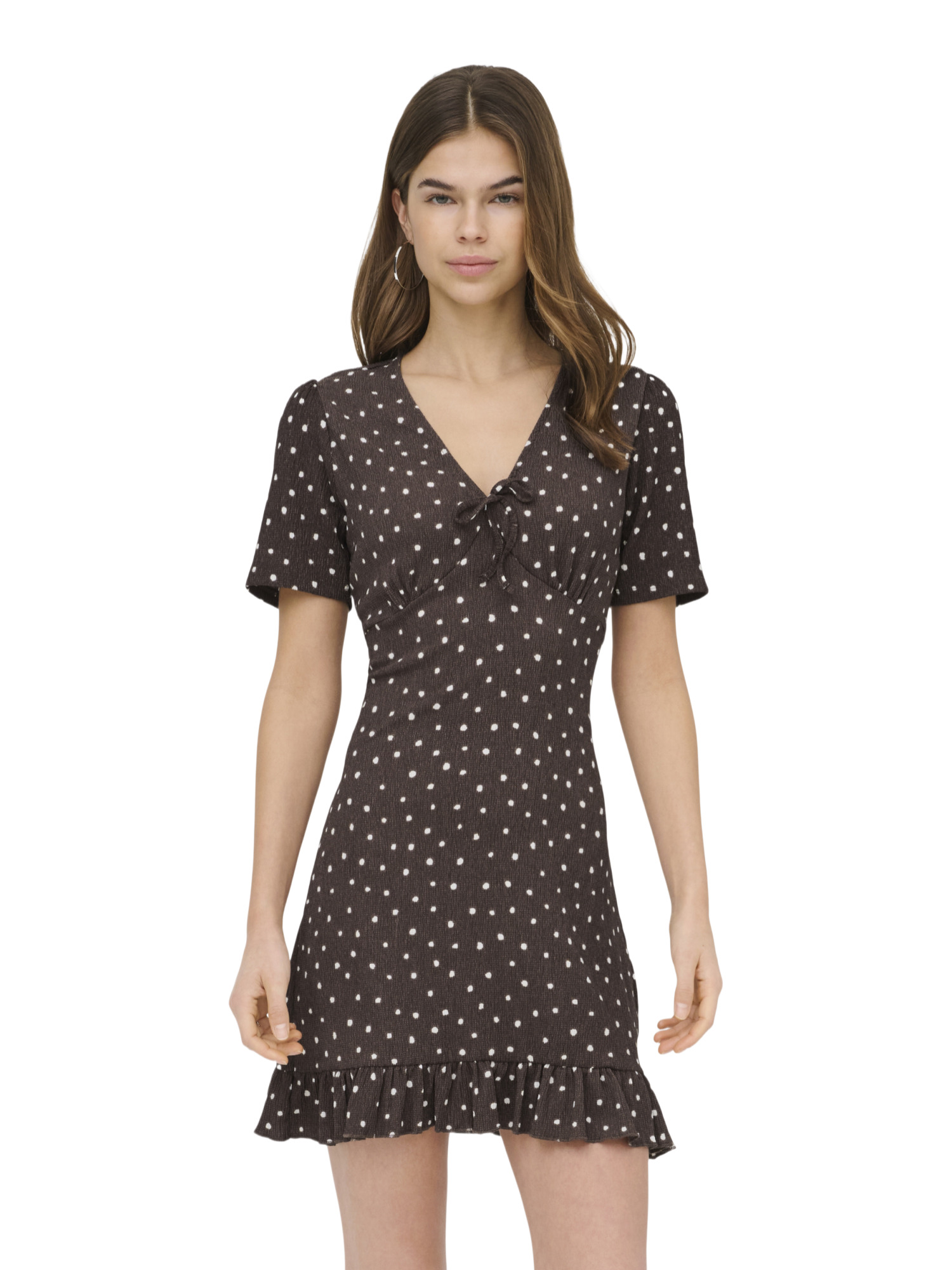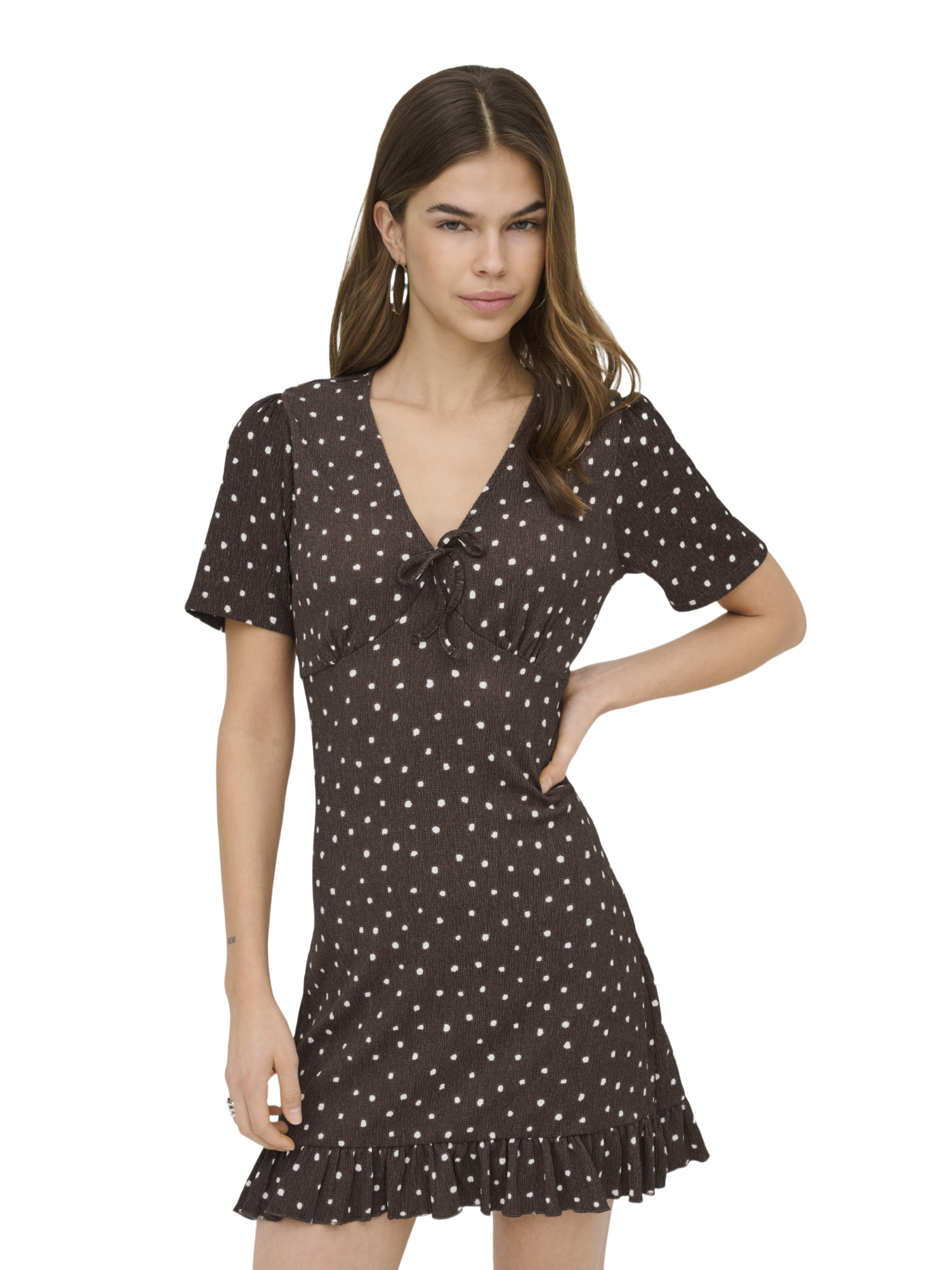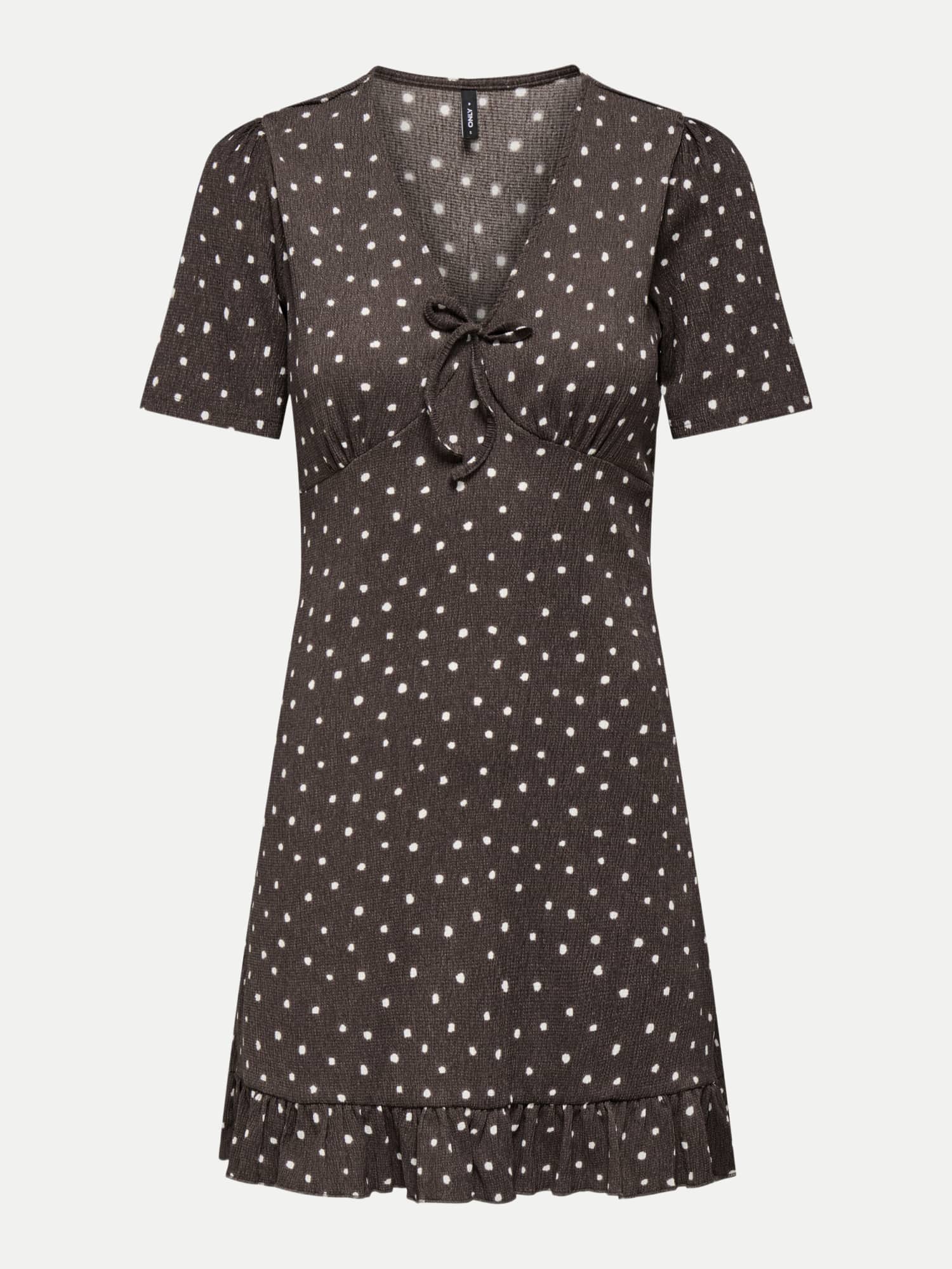 Wenn die Tage länger und die Nächte kürzer werden, ist es Zeit, Deine Garderobe aufzufrischen. Das "Kurze Sommer-Kleid" von ONLY ist genau das Richtige, um in der warmen Jahreszeit stilvoll und komfortabel zu bleiben. Mit seinem charmanten Allover-Print und den verspielten Schleifendetails wird dieses Kleid schnell zum Herzstück deiner Frühlings- und Sommeroutfits.