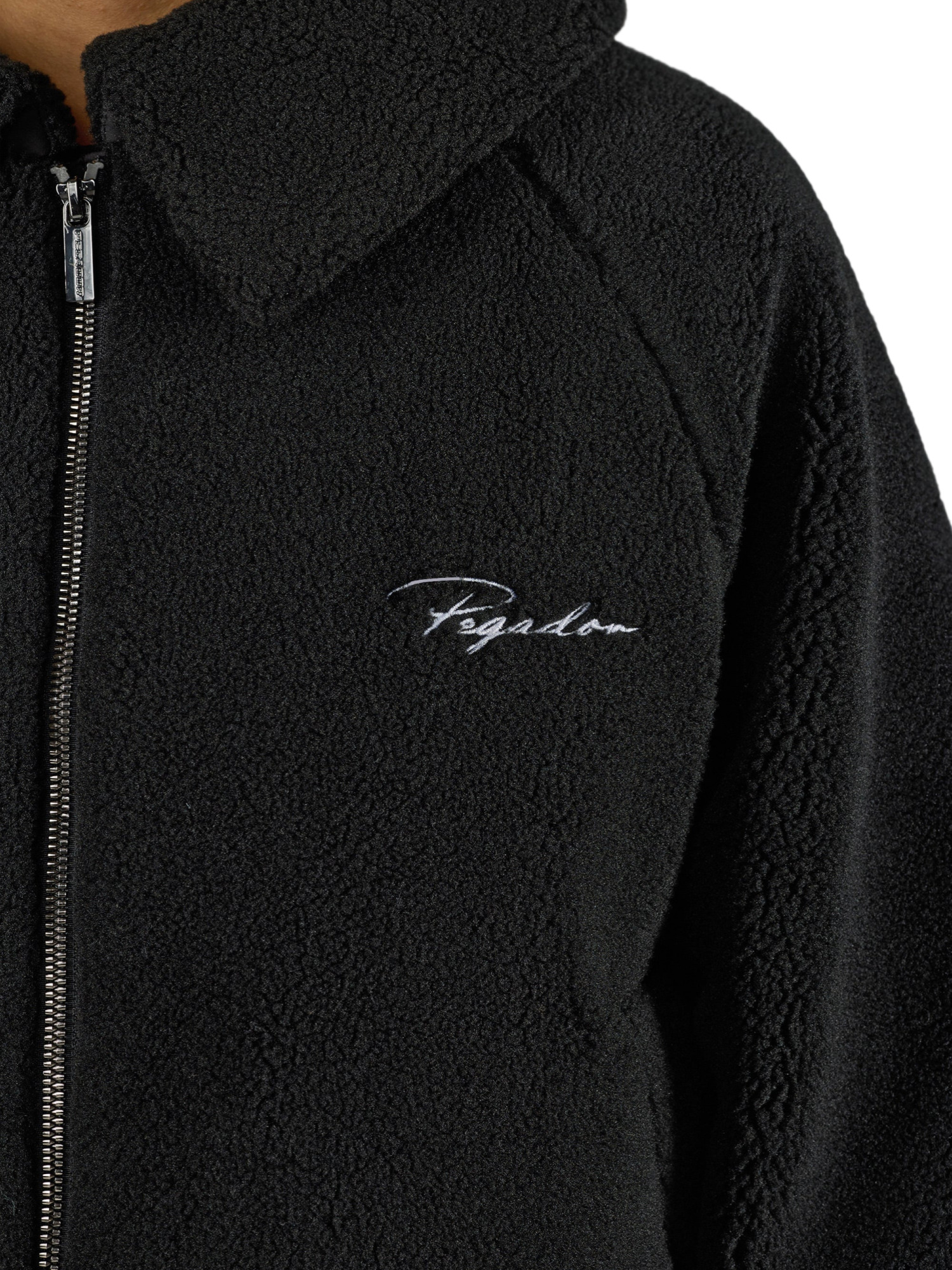 Der Umlegekragen und die fallenden Schultern sorgen für einen lässigen, aber dennoch raffinierten Look. Praktische Seitentaschen mit Reißverschluss bieten nicht nur Platz für deine Essentials, sondern sind auch mit einem dezenten Logo geprägt, das den hohen Qualitätsanspruch von PEGADOR unterstreicht. Ein weiteres Highlight ist der weiße Logo-Stick auf der Vorderseite, der der Jacke eine exklusive Note verleiht.