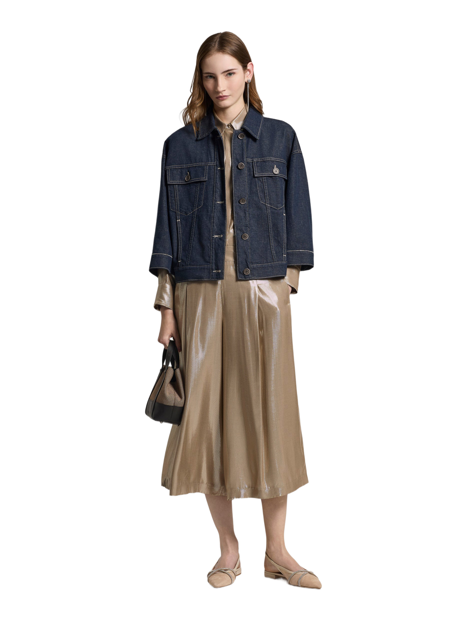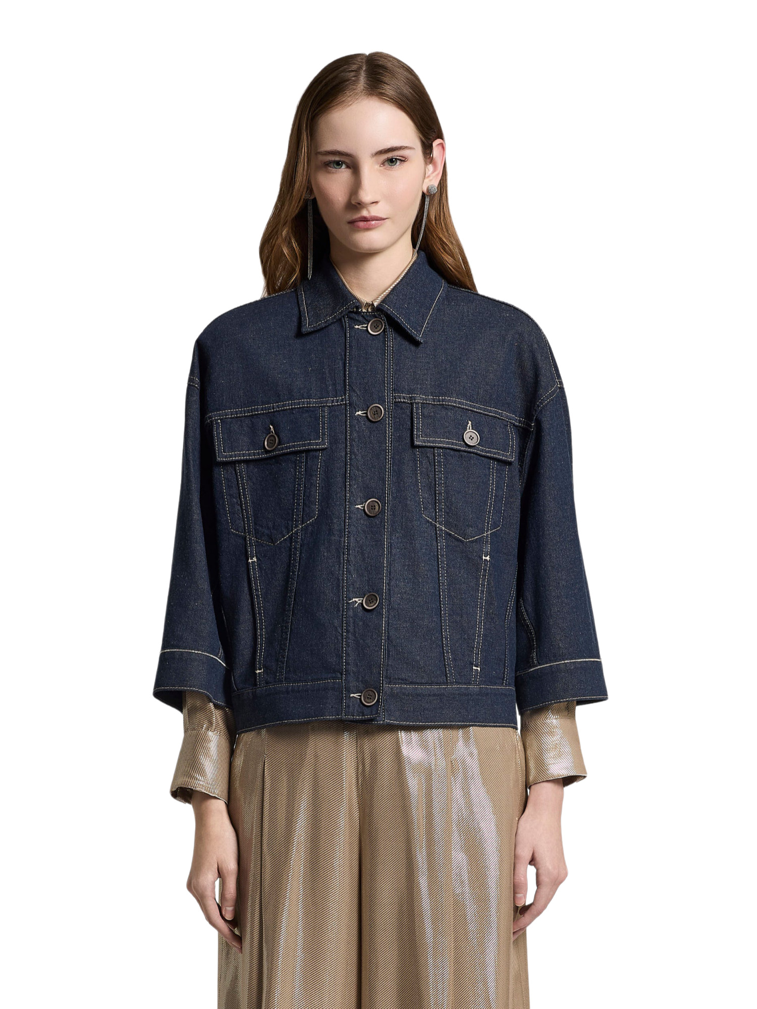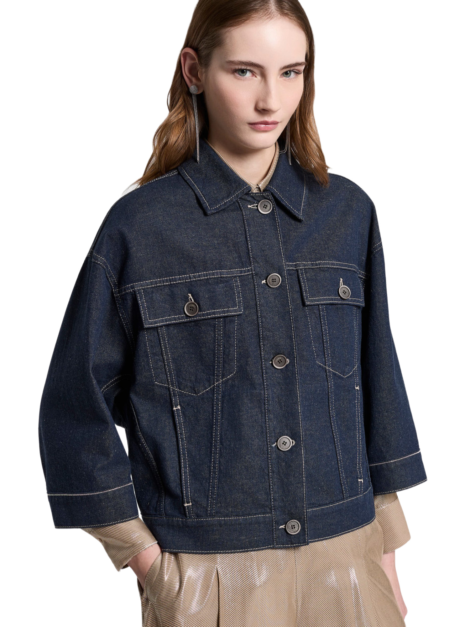 Freue Dich auf die perfekte Kombination aus Stil und Komfort mit unserer Jacke in Denim-Optik von PESERICO. Dieses Must-have für Deine Sommergarderobe verbindet die lässige Eleganz von Denim mit der Leichtigkeit und Atmungsaktivität eines Baumwoll-Leinen-Twills. Ideal für warme Tage und laue Abende!