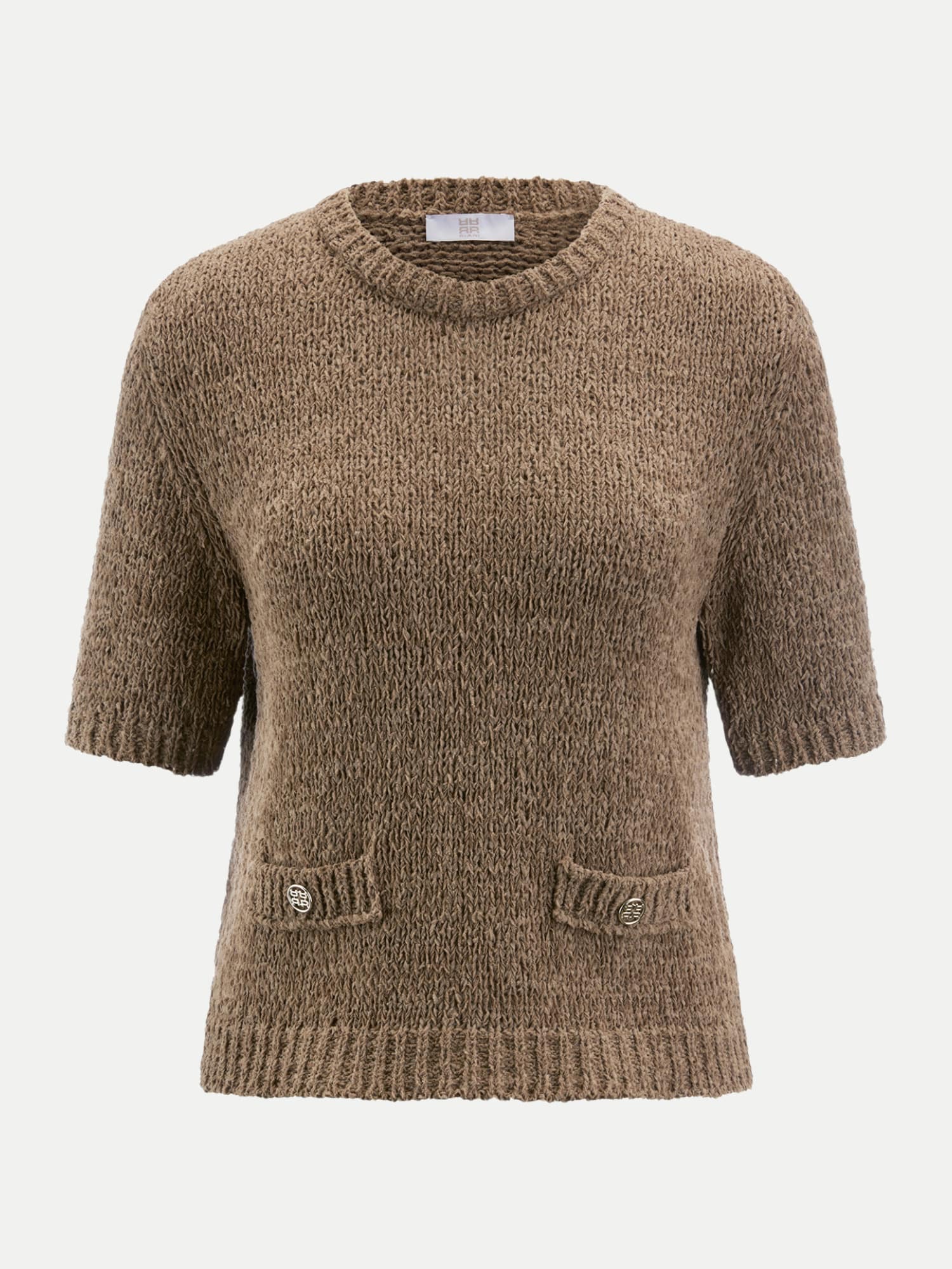 Die schlichte Eleganz des unifarbenen Designs macht diesen Pullover extrem vielseitig. Kombiniere ihn mit Jeans für einen entspannten Look oder mit einer schicken Hose für das Büro. Der klassische Rundhalskragen und die trendigen Halbärmel mit zwei dekorativen Knöpfen fügen eine modische Note hinzu, die sicher nicht unbemerkt bleibt.