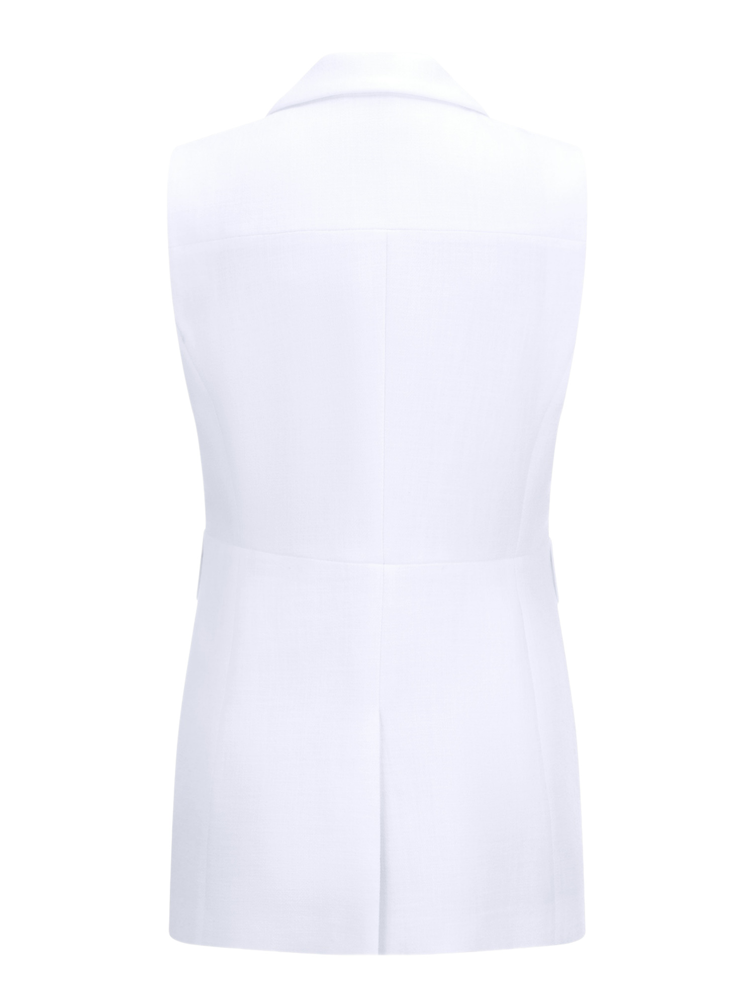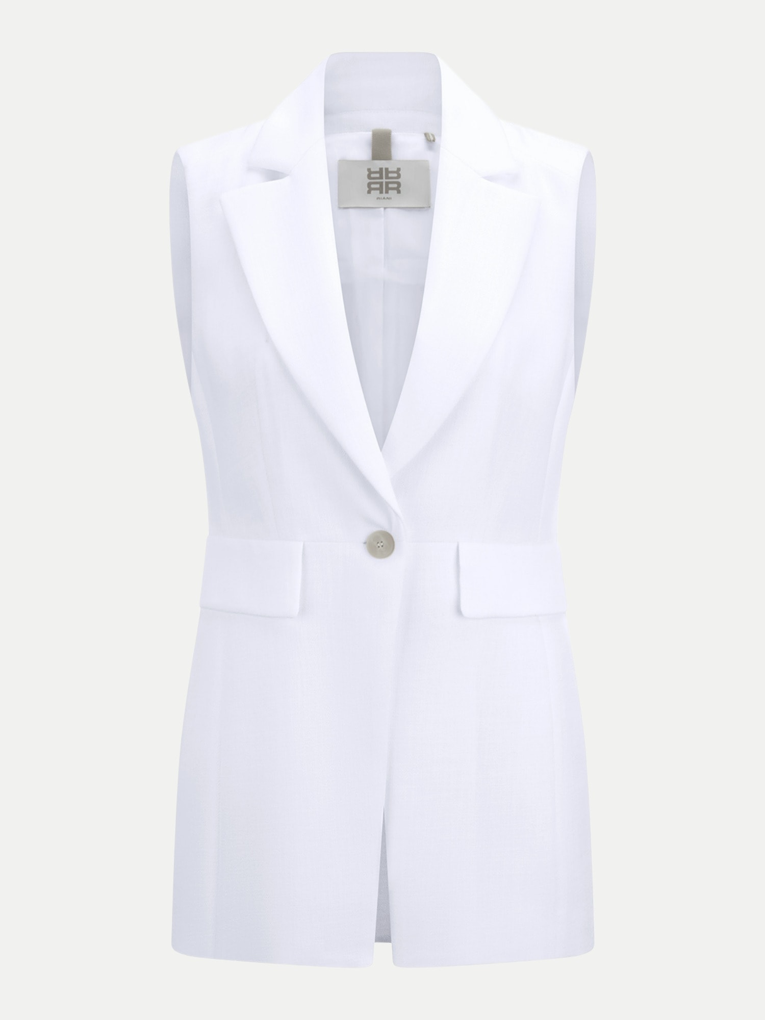 Egal, ob Du sie mit einer Bluse, einem Shirt, einem Kleid oder einer Stoffhose kombinierst – diese Weste ist ein wahres Kombinationstalent. Der Reverskragen und das ärmellose Design verleihen ihr einen modernen, selbstbewussten Look, der sowohl im Büro als auch bei einem Abendessen nicht fehl am Platz ist.