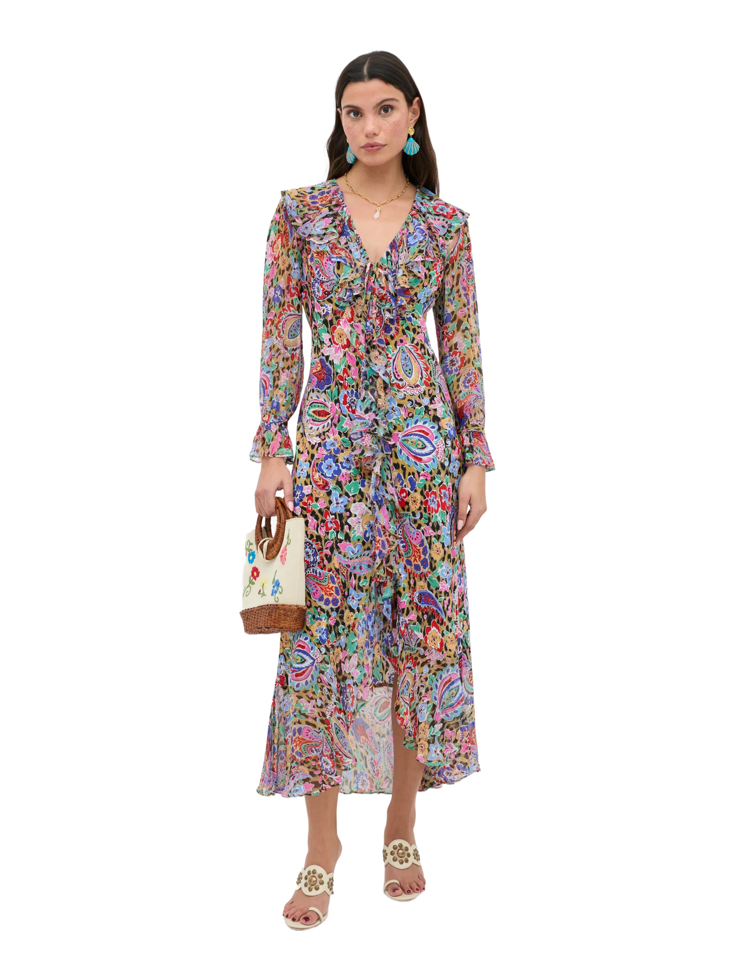 Träumst Du von einem Kleid, das nicht nur stilvoll, sondern auch einzigartig ist? Das Kleid GRACYE von Rixo könnte genau das Richtige für Dich sein. Mit seinem zauberhaften Allover-Print und dem tiefen V-Ausschnitt verleiht es jedem Anlass einen Hauch von Eleganz und Romantik.