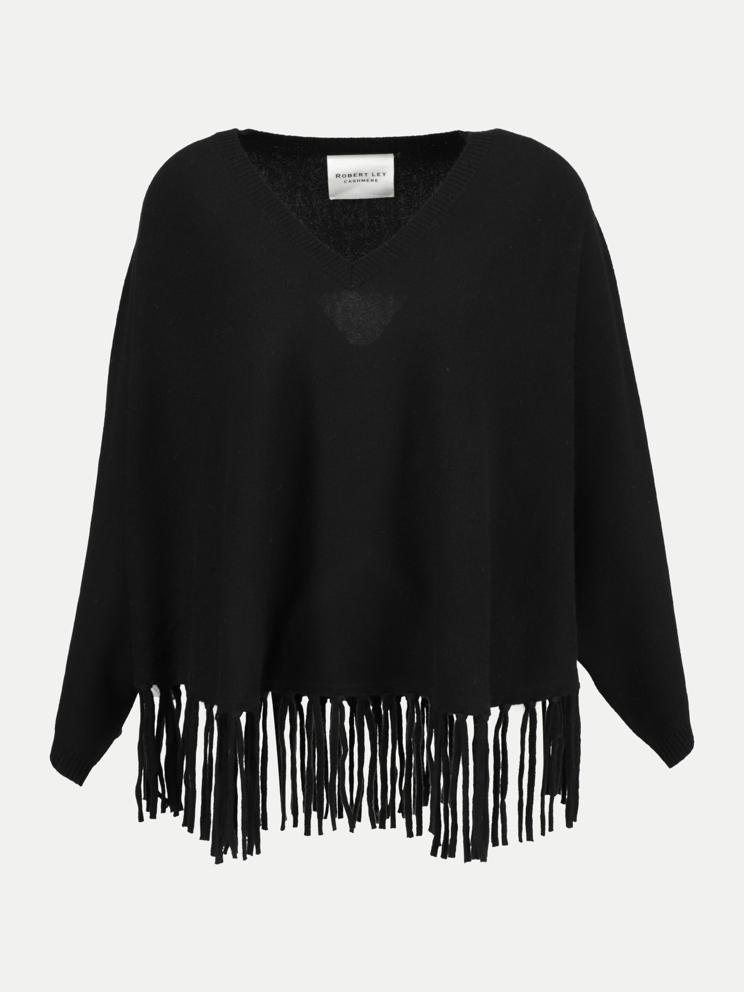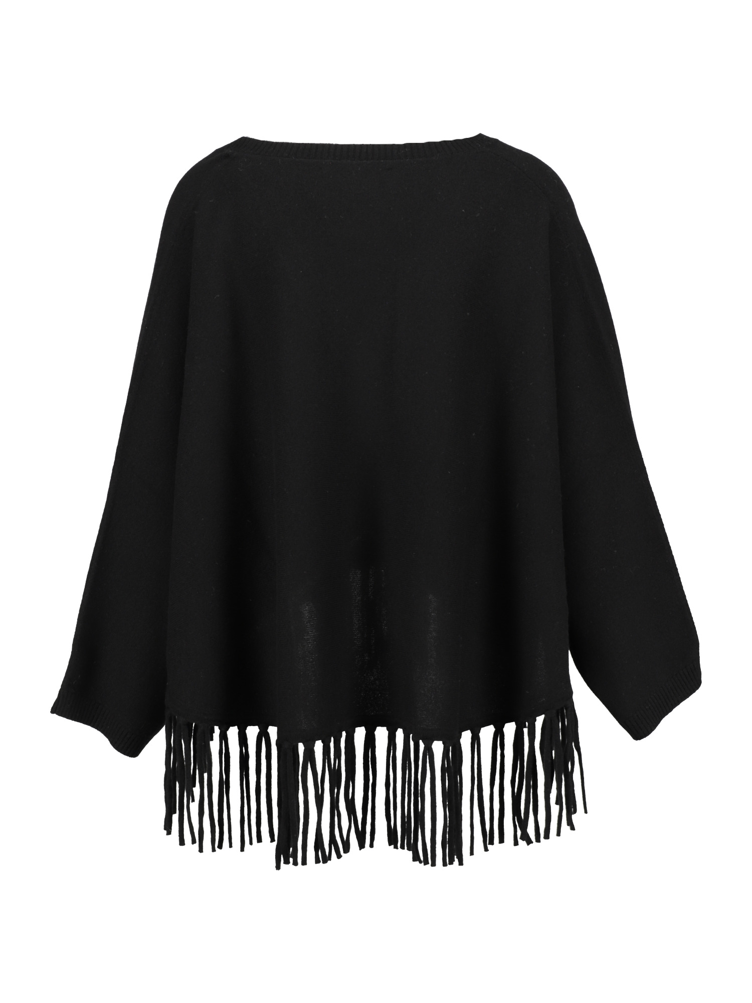 Das unifarbene Design macht den Poncho vielseitig kombinierbar – perfekt für Casual Looks oder auch für schickere Anlässe. Der elegante V-Ausschnitt und die schulterbedeckenden Ärmel verleihen eine moderne Note, während die Fransen am Saum dem Poncho eine spielerische Lässigkeit geben.
