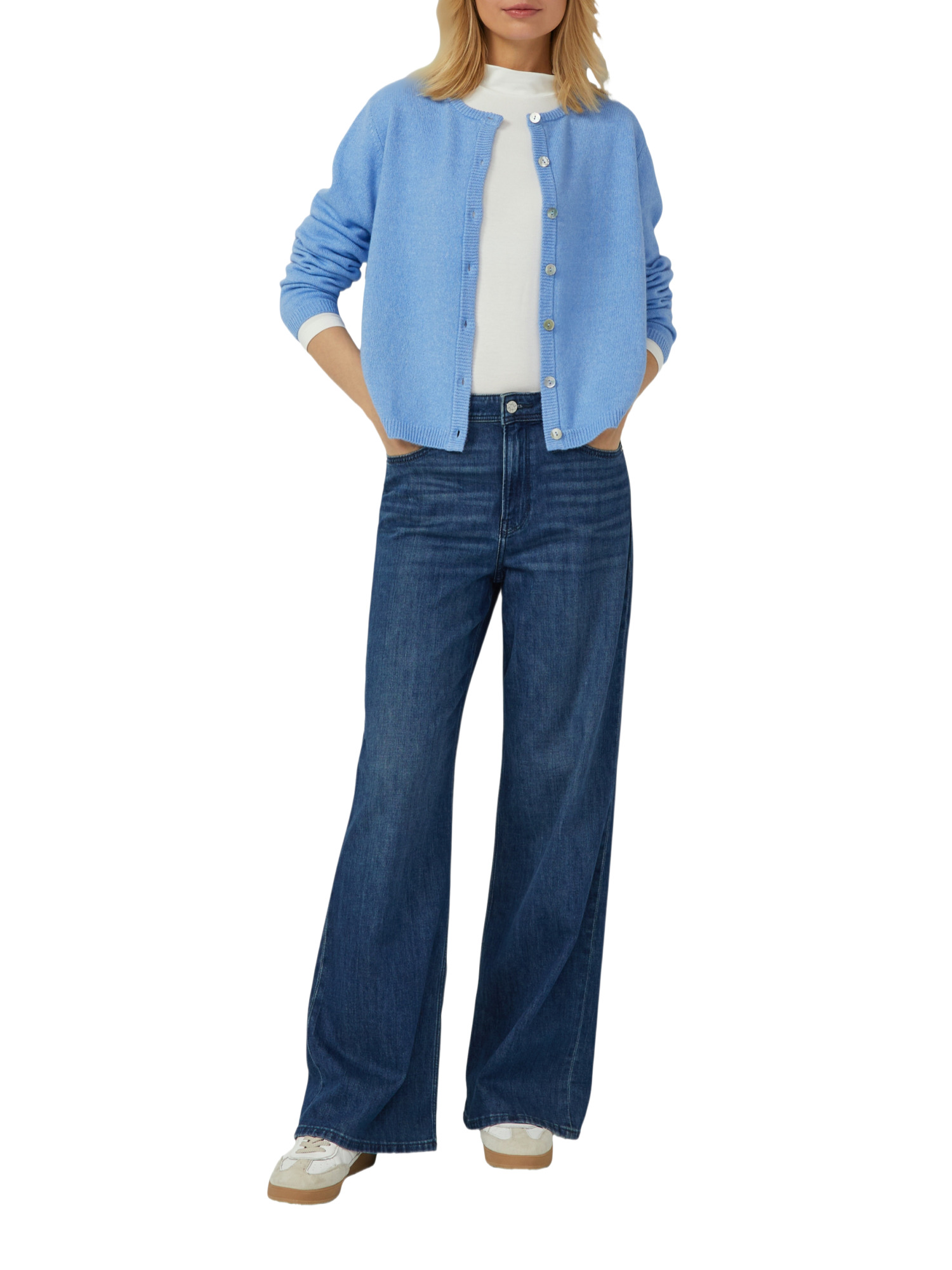 Diese Strickjacke ist der Inbegriff von Vielseitigkeit. Ihr schlichtes, unifarbenes Design macht sie zum idealen Begleiter für nahezu jedes Outfit. Ob über einem leichten Kleid an einem frischen Frühlingsmorgen oder als zusätzliche Wärmeschicht über einem T-Shirt im Herbst – diese Jacke passt sich deinem Stil an.