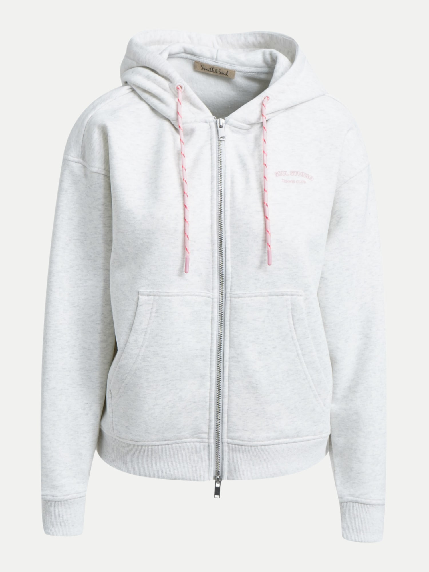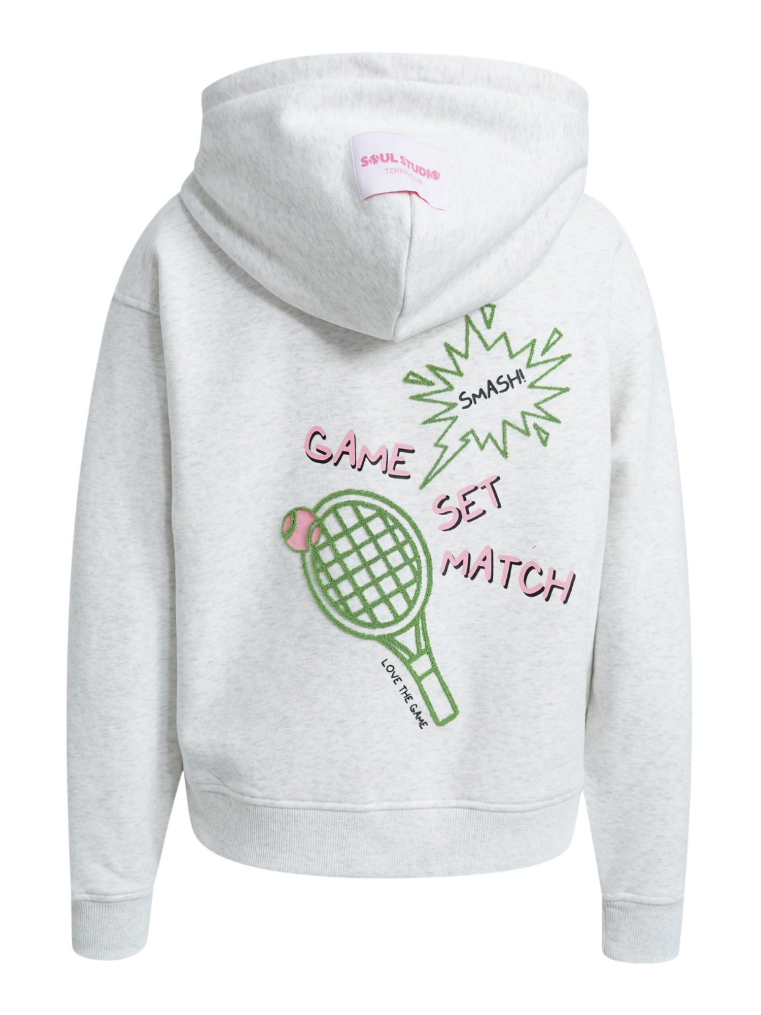 Die Sweatshirt-Jacke von Smith & Soul ist nicht nur ein einfaches Kleidungsstück, sondern ein echter Hingucker, der Komfort und Stil perfekt vereint. Mit ihrem lässigen "Game Set Match" Rückenprint bringt sie eine spielerische Note in deine Garderobe und hält dich gleichzeitig kuschelig warm.