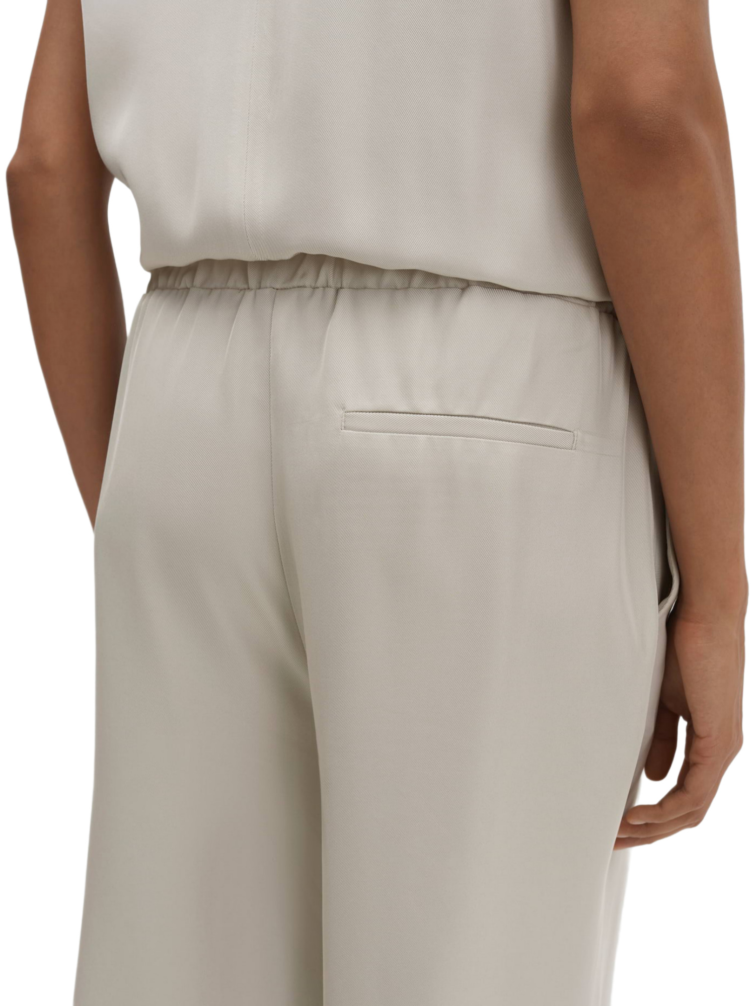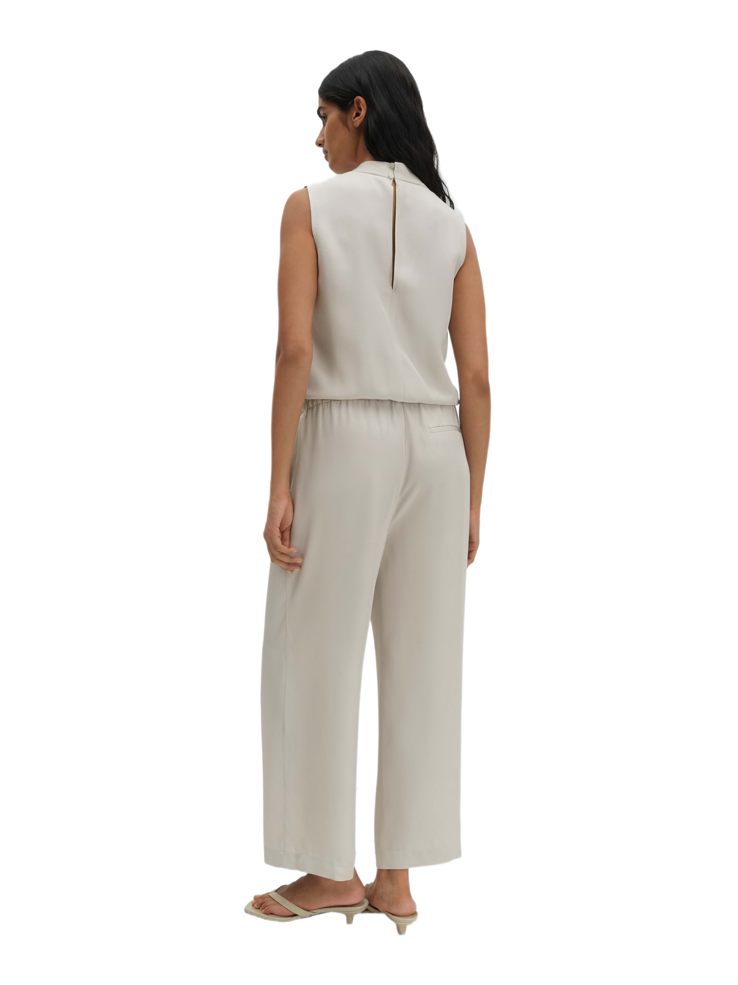 Neben dem praktischen Gummibund in der Taille, der für optimalen Sitz sorgt, verfügt der Jumpsuit über schräge Eingrifftaschen und eine Zier-Paspeltasche hinten, die praktisch und stilvoll zugleich sind. Der Knopf mit Öse im Rücken sowie der Schlitz bieten nicht nur Komfort, sondern auch einen Hauch von Raffinesse.