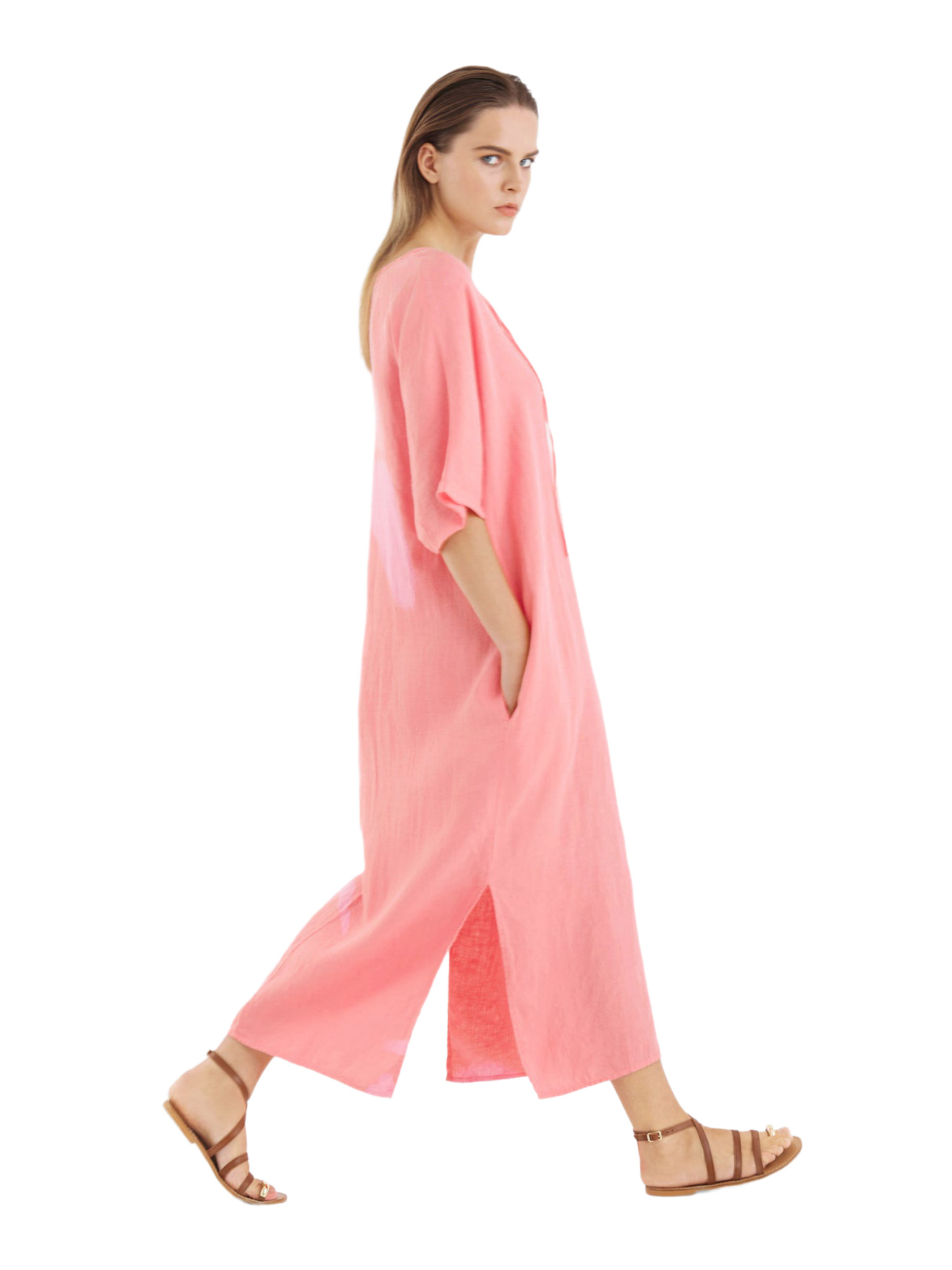 Wenn die Temperaturen steigen, ist das Maxikleid aus Leinen von SoSUE genau das Richtige für Dich. Gefertigt aus 100% hochwertigem Leinen, verspricht dieses Kleid nicht nur Stil, sondern auch unvergleichlichen Tragekomfort. Die zarte Pinkfarbe verleiht Dir eine frische und feminine Ausstrahlung, perfekt für jede Sommergarderobe.