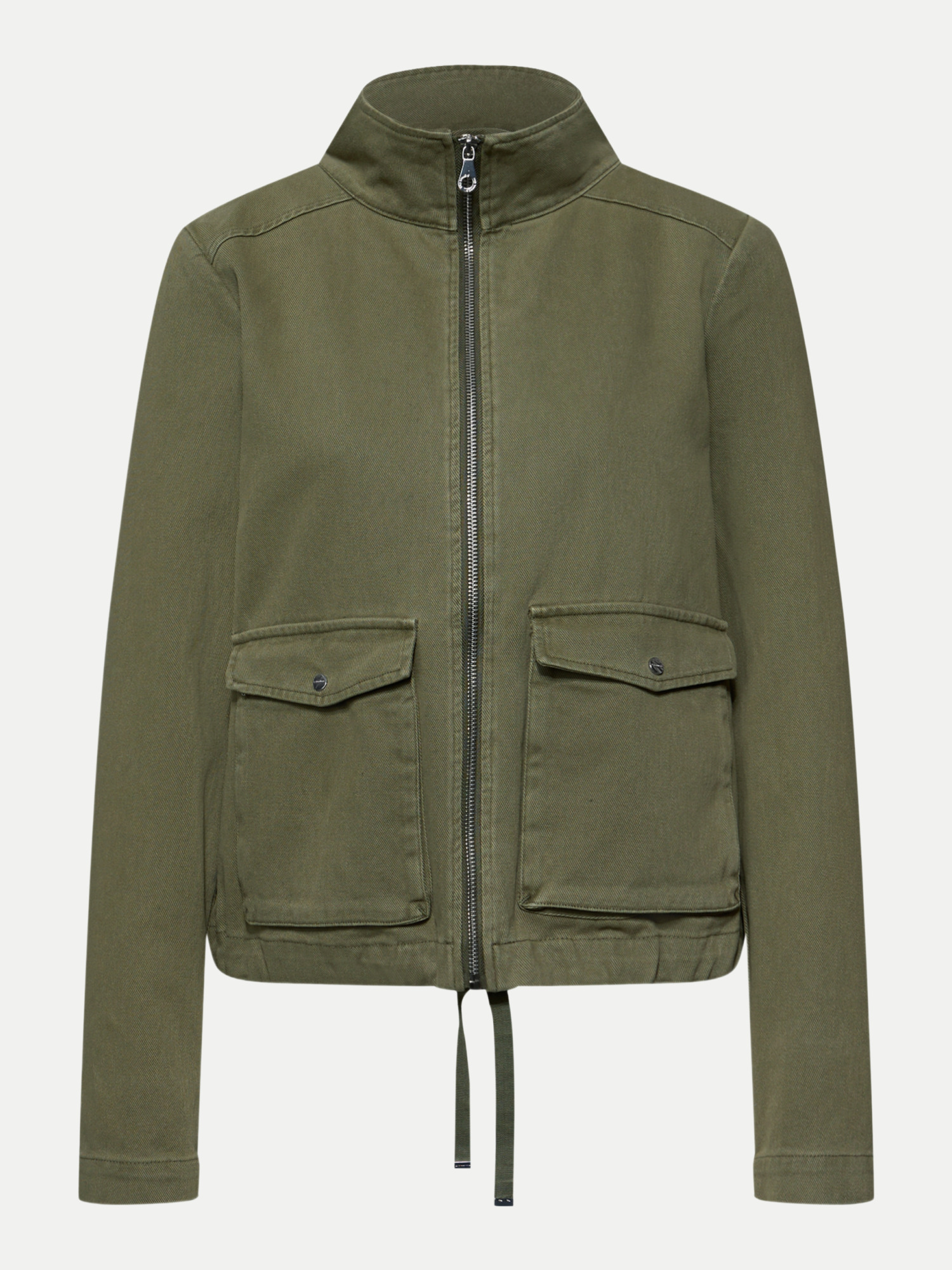 Die Baumwolljacke präsentiert sich in einem schlichten, unifarbenen Design, das sich mühelos zu jedem Outfit kombinieren lässt. Der praktische Stehkragen schützt dich an kühleren Tagen, während der durchgehende Reißverschluss das An- und Ausziehen erleichtert. Die seitlichen Taschen mit Knopfverschluss bieten nicht nur einen sicheren Platz für deine Essentials, sondern unterstreichen auch den lässigen Look der Jacke.