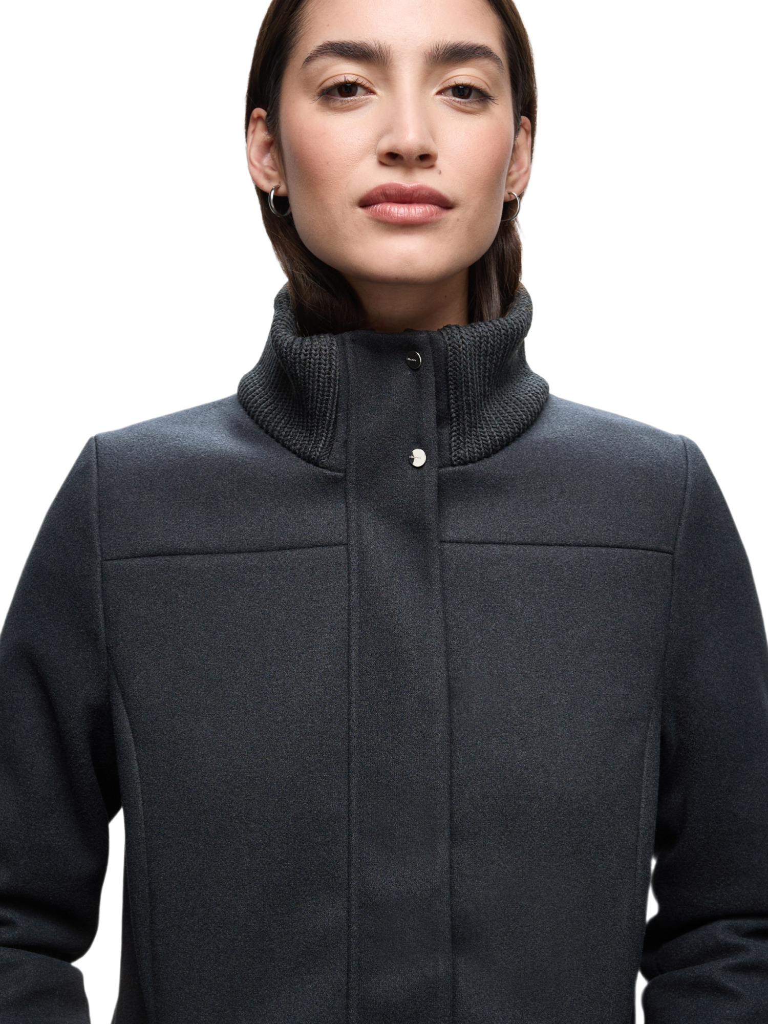 Dieser Mantel ist nicht nur ein Kleidungsstück, sondern ein echtes Statement. Die feinen Strickelemente am Stehkragen verleihen ihm eine einzigartige Note, die Deinem Outfit einen Hauch von Raffinesse hinzufügt. Die durchgehende Knopfleiste sorgt für einen klassischen Look, während die seitlichen Taschen mit Zipper praktisch und stilvoll zugleich sind.