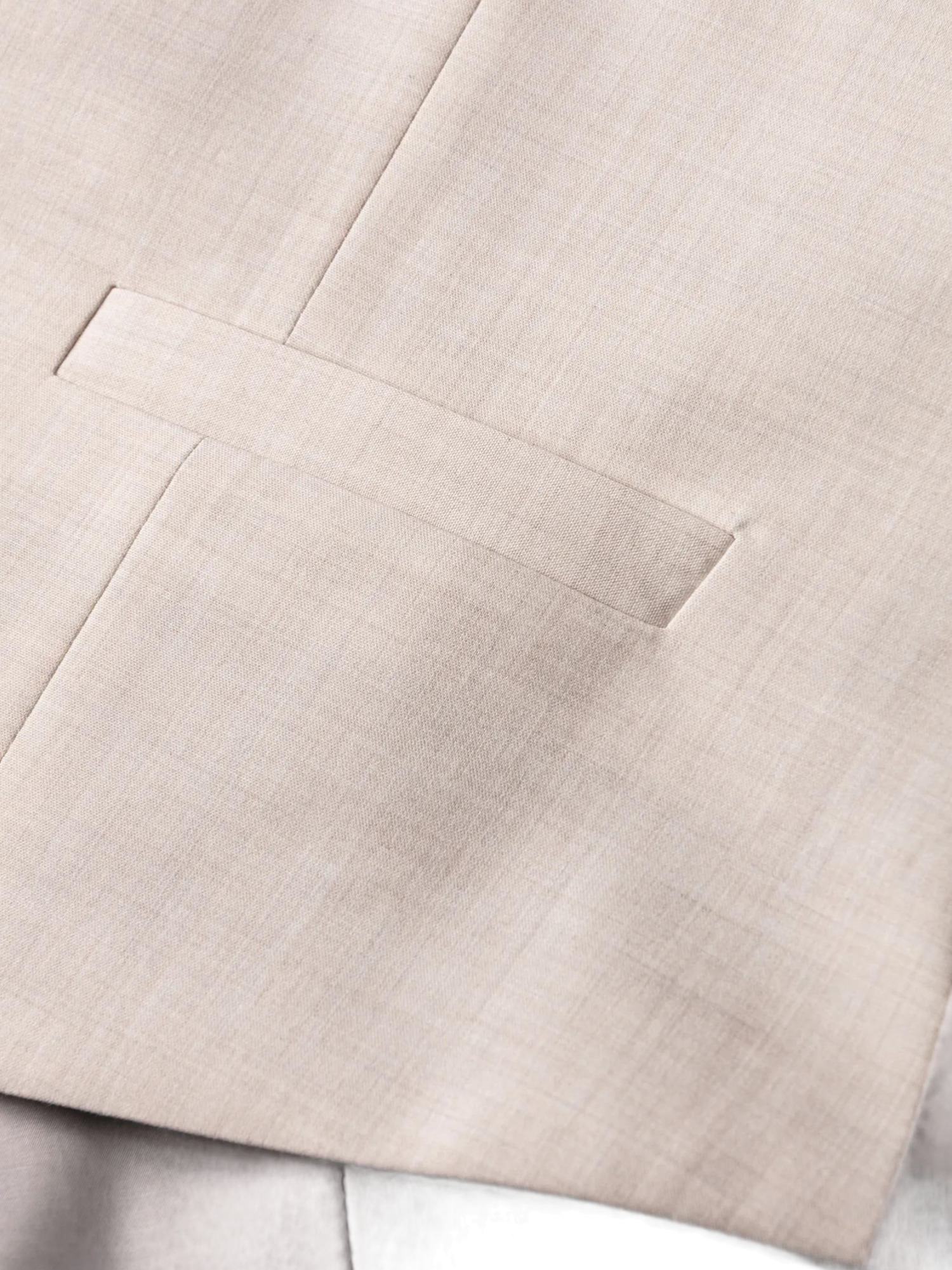 Die durchgehende Knopfleiste mit fünf Knöpfen verleiht der Weste einen klassischen Charme, während die zwei Leistentaschen praktischen Stauraum für kleine Alltagsgegenstände bieten. Das unifarbene Design macht die Weste zu einem vielseitigen Begleiter, der sich mühelos in jedes Outfit integrieren lässt.