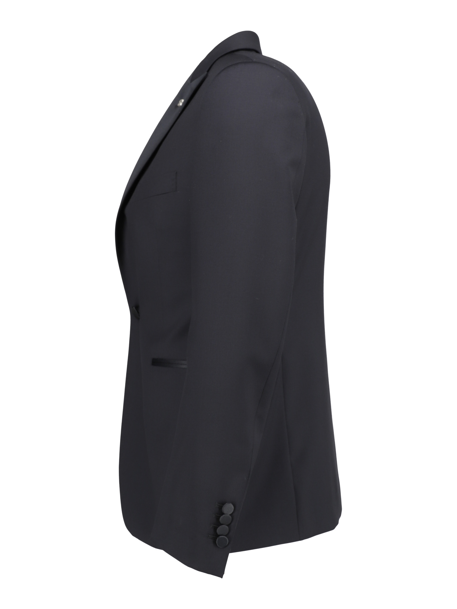 Der Smoking besticht durch klassisches Design und hochwertige Verarbeitung. Das Sakko verfügt über drei Außentaschen und Kissing-Buttons, die dem Gesamtbild einen stilvollen Akzent verleihen. Die Hose ist mit zwei Schubtaschen und zwei geknöpften Paspeltaschen ausgestattet, die praktischen Stauraum bieten. Die Satin-Elemente, die in das Design eingeflochten sind, verleihen dem Smoking einen gehobenen und eleganten Touch.