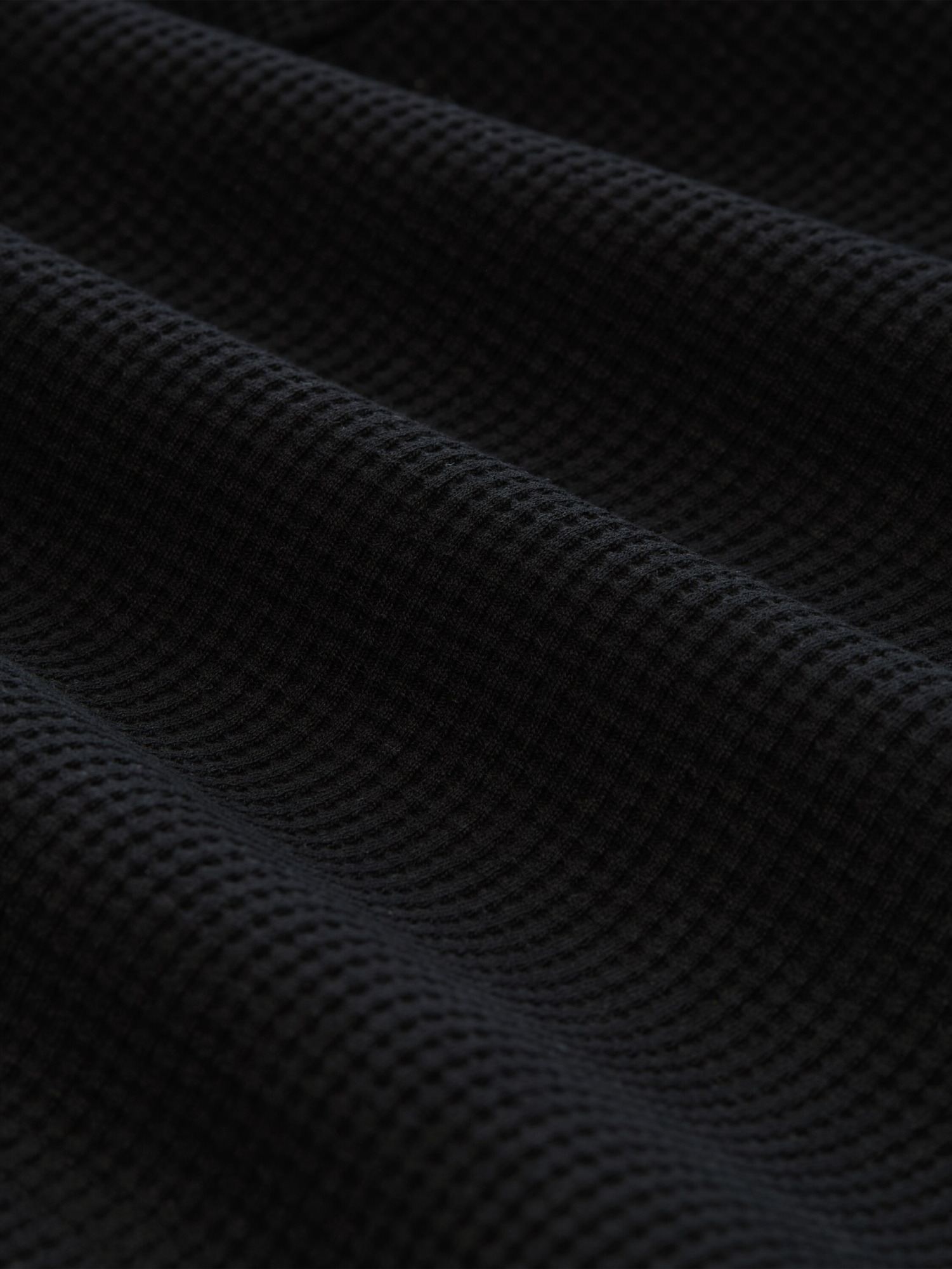 Dank der Kombination aus 60% Baumwolle und 40% recyceltem Polyester fühlt sich das Hemd angenehm leicht auf der Haut an. Der Stoff in Waffel-Optik sorgt nicht nur für eine interessante Textur, sondern auch für eine gute Luftzirkulation, die dich auch an heißen Tagen kühl hält.