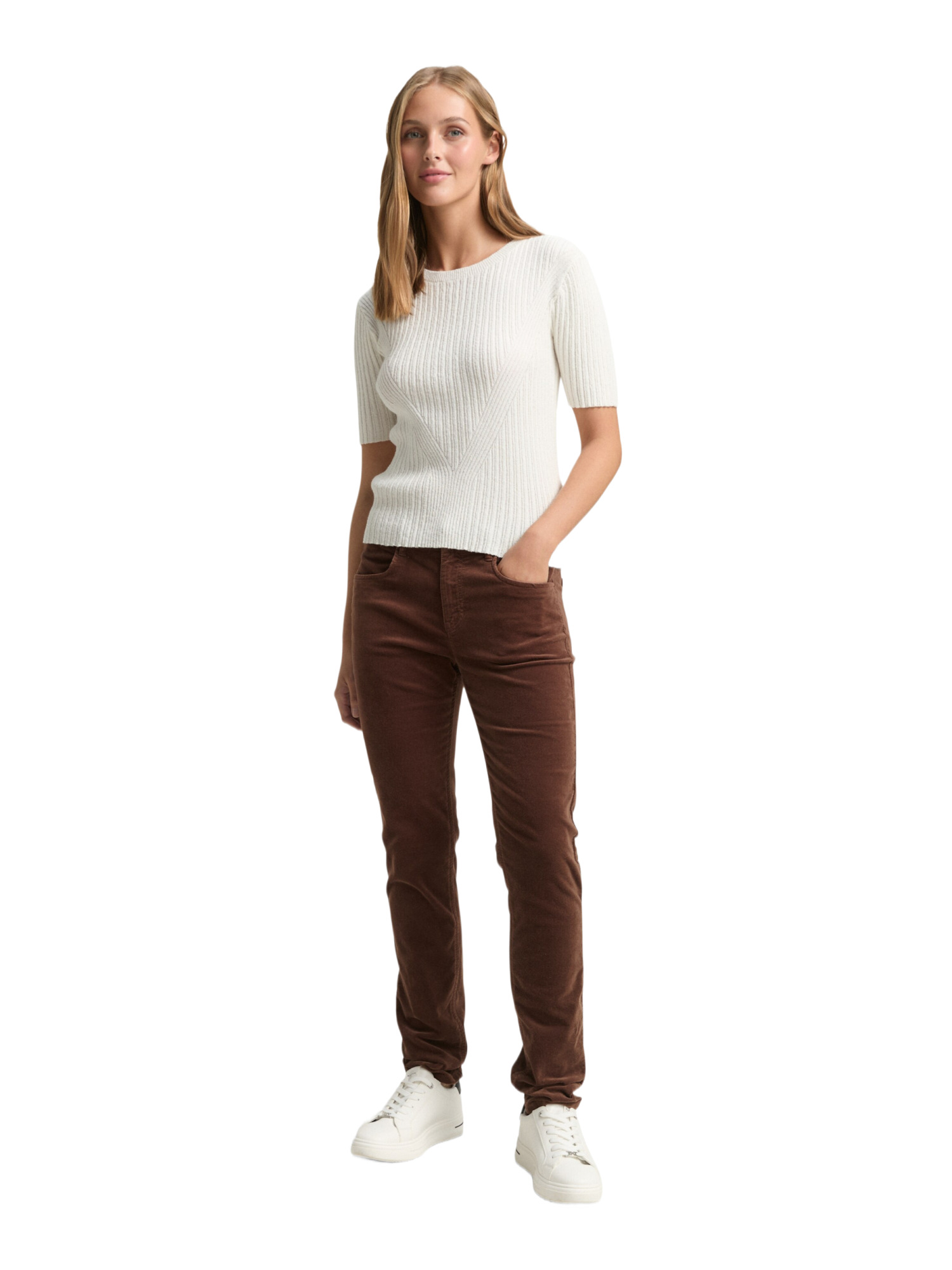 Die Hose präsentiert sich im klassischen Five-Pocket-Style. Die seitlichen Eingriffstaschen vorne und die aufgesetzten Taschen hinten bieten nicht nur praktischen Stauraum, sondern auch ein zeitloses Designelement, das nie aus der Mode kommt. Die weiche Samttextur verleiht dem Ganzen eine luxuriöse Note und macht die Hose zu einem echten Hingucker.