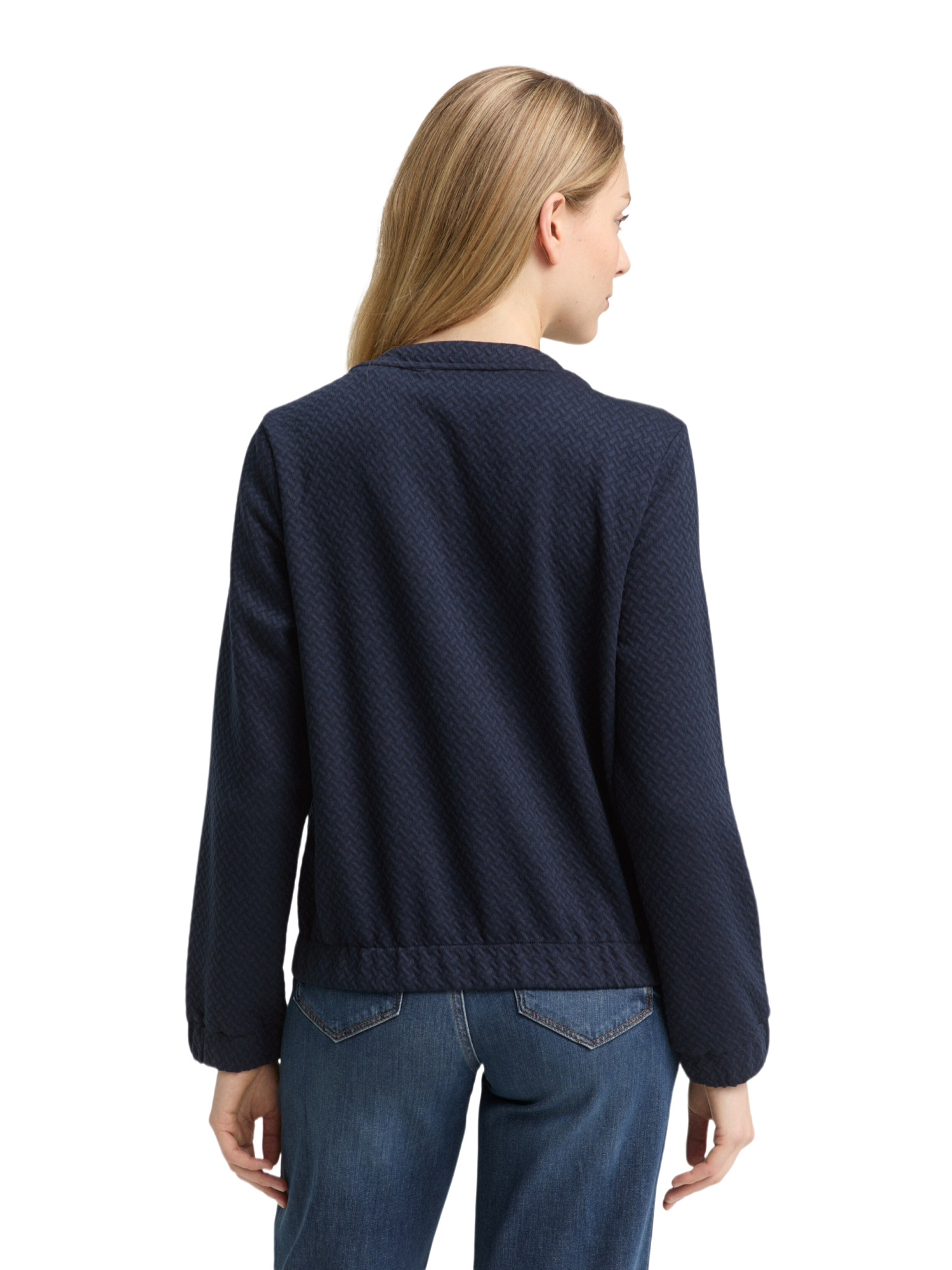 Die strukturierte Sweatshirtjacke ist aus einem hochwertigen Materialmix gefertigt, der 72% Polyester, 26% Viskose und 2% Elasthan umfasst. Dies sorgt für eine angenehme Elastizität und Formstabilität. Die seitlichen Eingriffstaschen bieten praktischen Stauraum für deine Kleinigkeiten, während der elastische Gummibund am Saum und an den Ärmeln dafür sorgt, dass alles schön an seinem Platz bleibt.