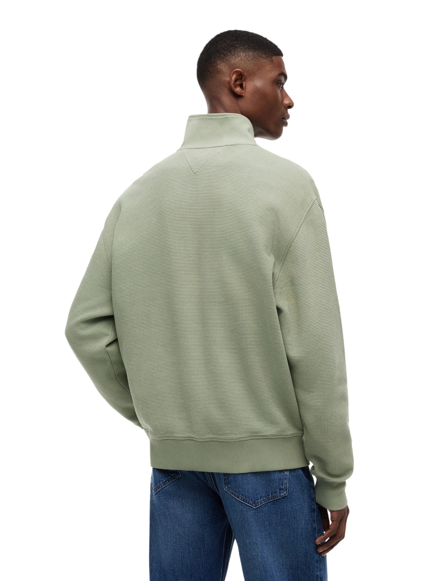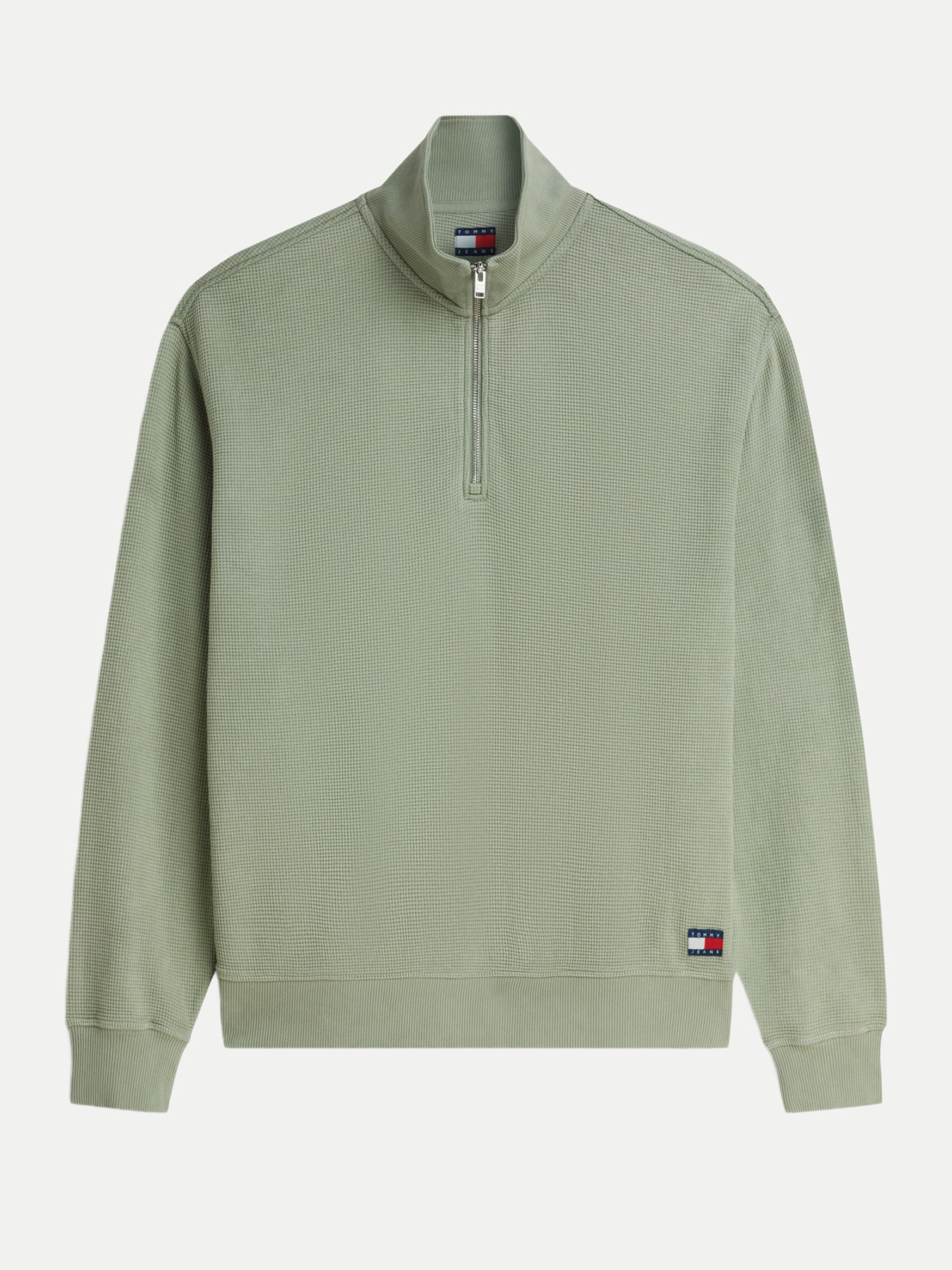 Wenn es draußen kühler wird, ist es Zeit, Deine Garderobe mit Stücken zu bereichern, die nicht nur warm halten, sondern auch stilvoll aussehen. Der Half-Zip Sweater mit Waffel Struktur von Tommy Jeans ist genau das Richtige für solche Tage. Mit seinem einzigartigen Design und der hochwertigen Verarbeitung bietet dieser Pullover eine perfekte Kombination aus Komfort und Style.