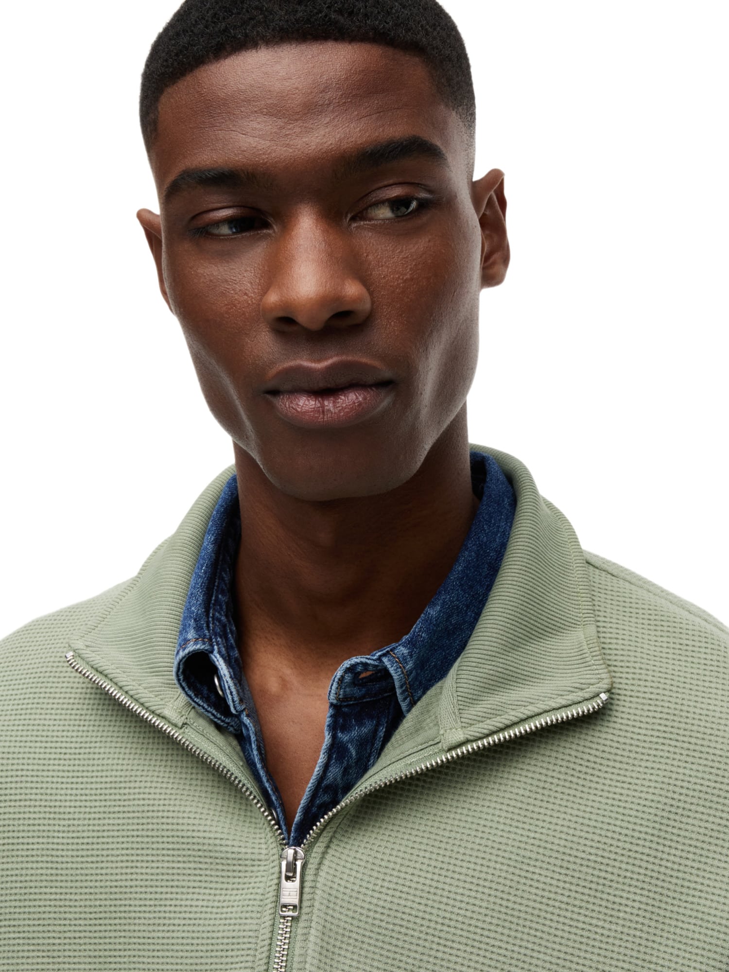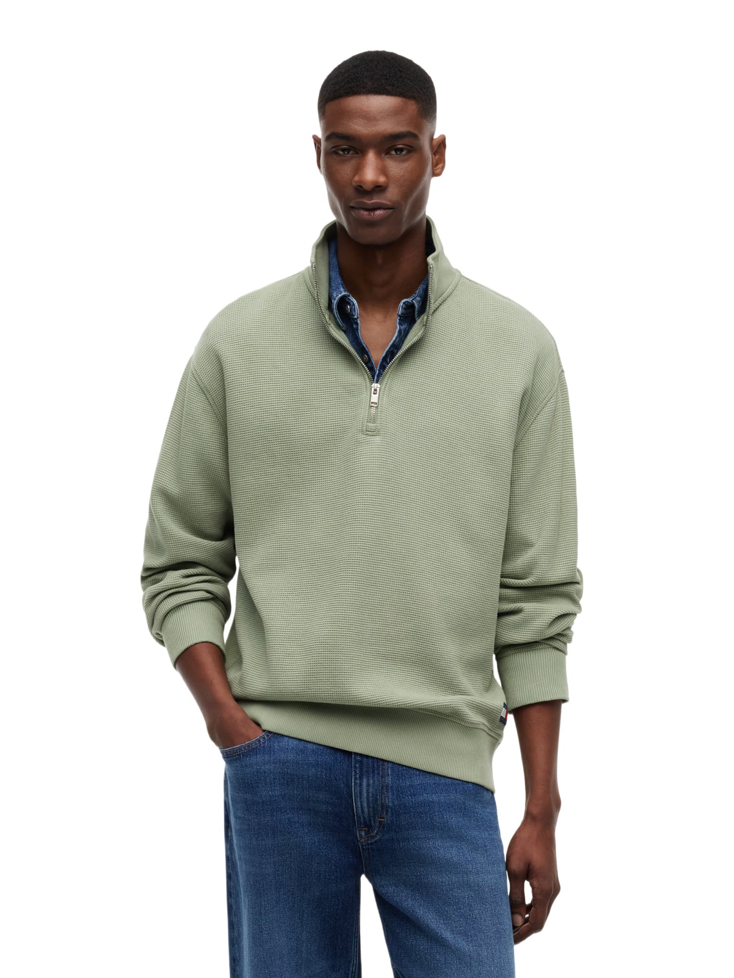 Der Stehkragen und der praktische Half-Zip machen diesen Sweater zu einem echten Hingucker. Der Kragen schützt Deinen Hals vor kühlem Wind, während der Reißverschluss Dir ermöglicht, die Temperatur nach Bedarf zu regulieren. Zudem sind die langen Ärmel ideal, um sich gemütlich einzukuscheln.
