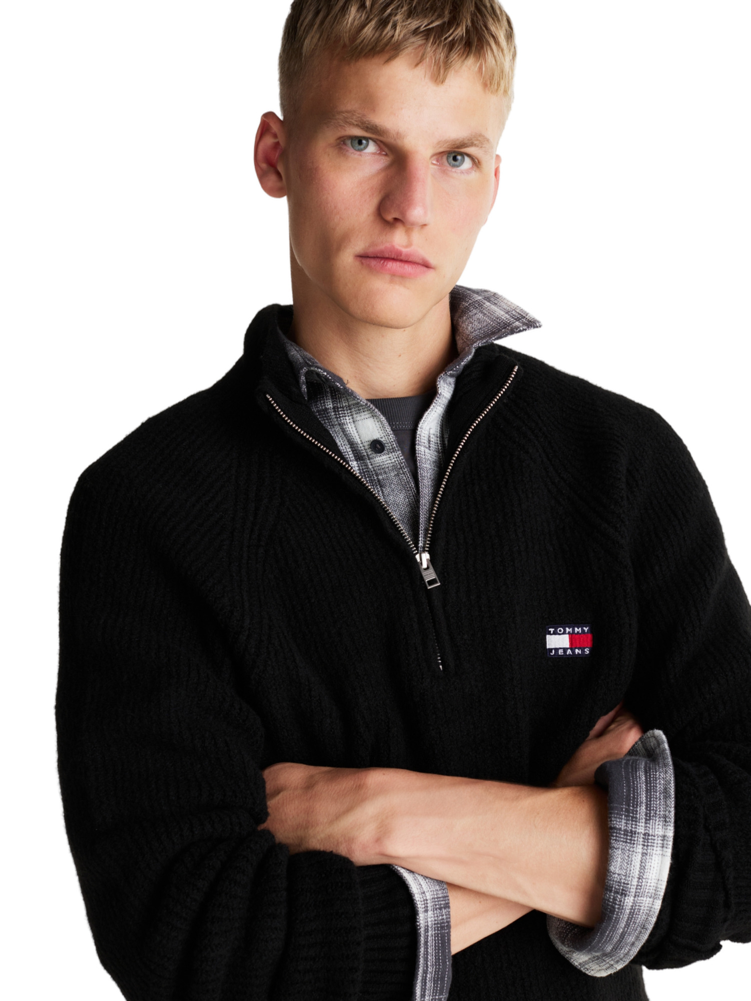 Ein stilvolles Update für Deine Herbstgarderobe: Der weiche Wollmix dieses Pullovers sorgt für angenehme Wärme an kühlen Tagen. Der Rippstrick verleiht ihm eine subtile Struktur, die in Kombination mit dem unifarbenen Design vielseitig kombinierbar ist. Der Troyer-Kragen mit Viertel-Reißverschluss bietet Dir flexible Styling-Optionen, ob offen für einen lässigen Look oder geschlossen für zusätzliche Wärme. Dank des Tommy Jeans-Badges auf der Brust erhält der Pullover einen dezenten Markenakzent, der ihn von anderen abhebt und Deine Liebe zu zeitloser Mode unterstreicht.