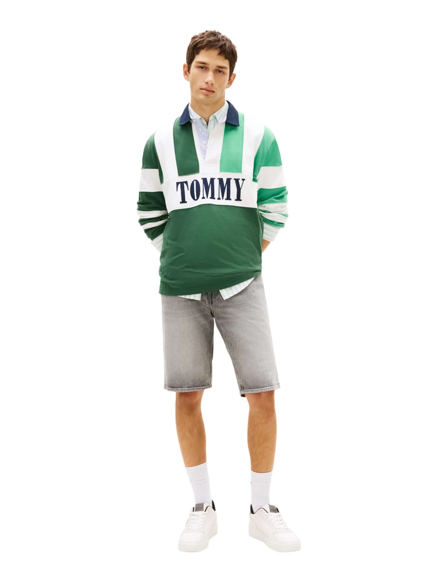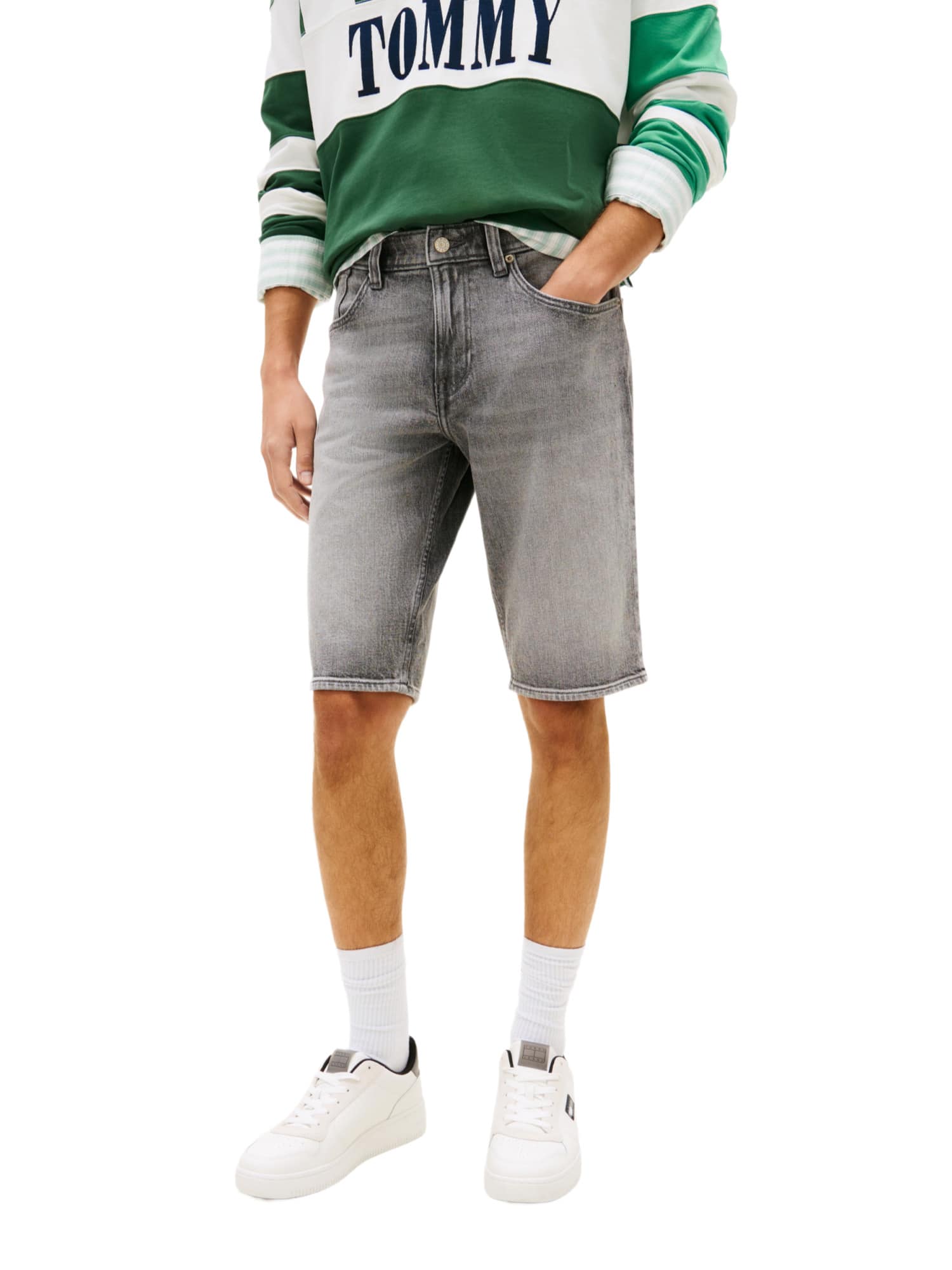 Die klassische Five-Pocket-Styling bietet nicht nur praktischen Stauraum, sondern auch einen zeitlosen Look. Besondere Akzente wie das Tommy Jeans Branding und die Tommy-Flaggenstickerei auf der Münztasche machen diese Shorts zu einem echten Hingucker. Zudem sorgen die dezente Whiskering- und Fading-Effekte auf der Vorderseite für eine modische Note.