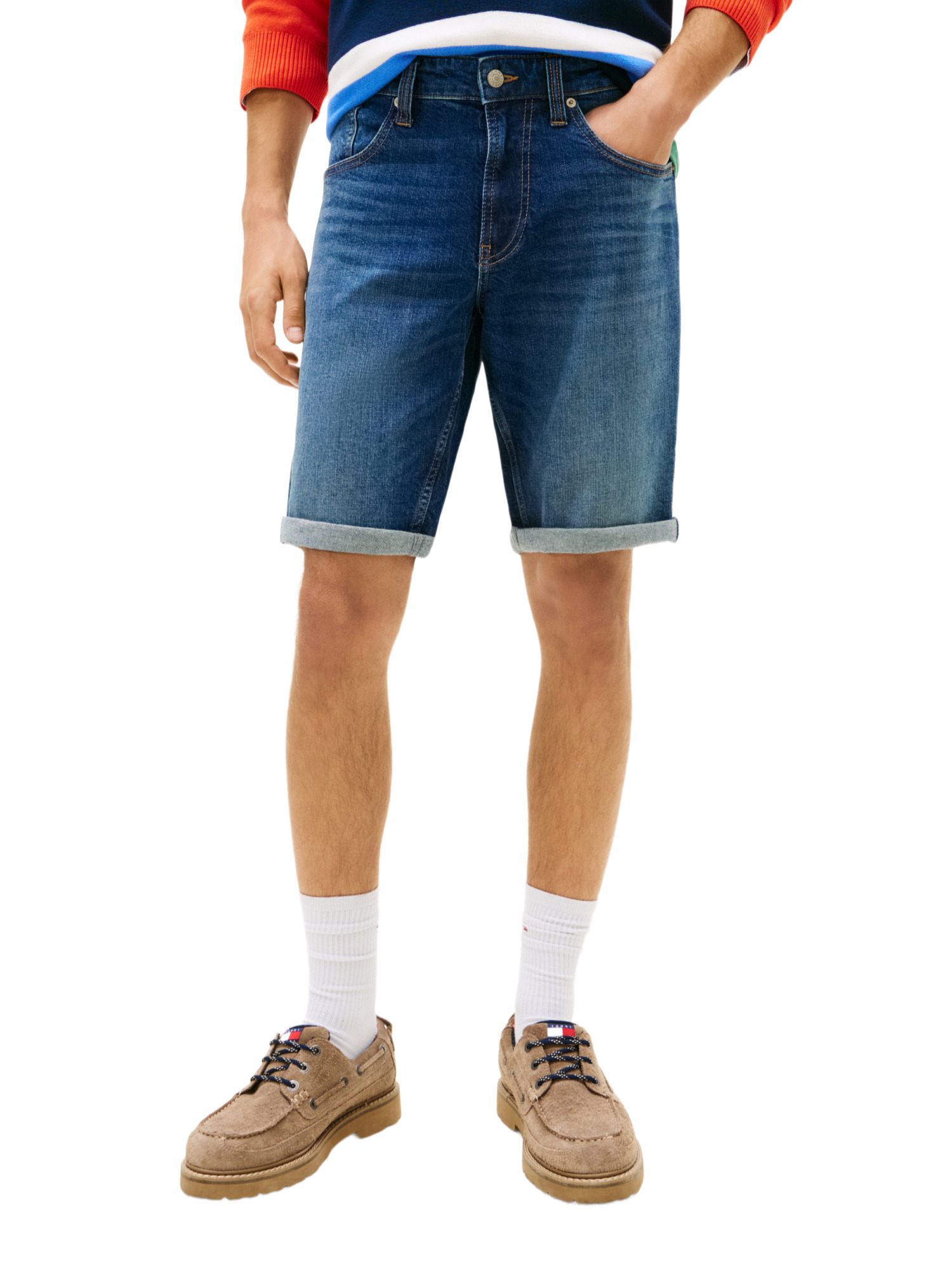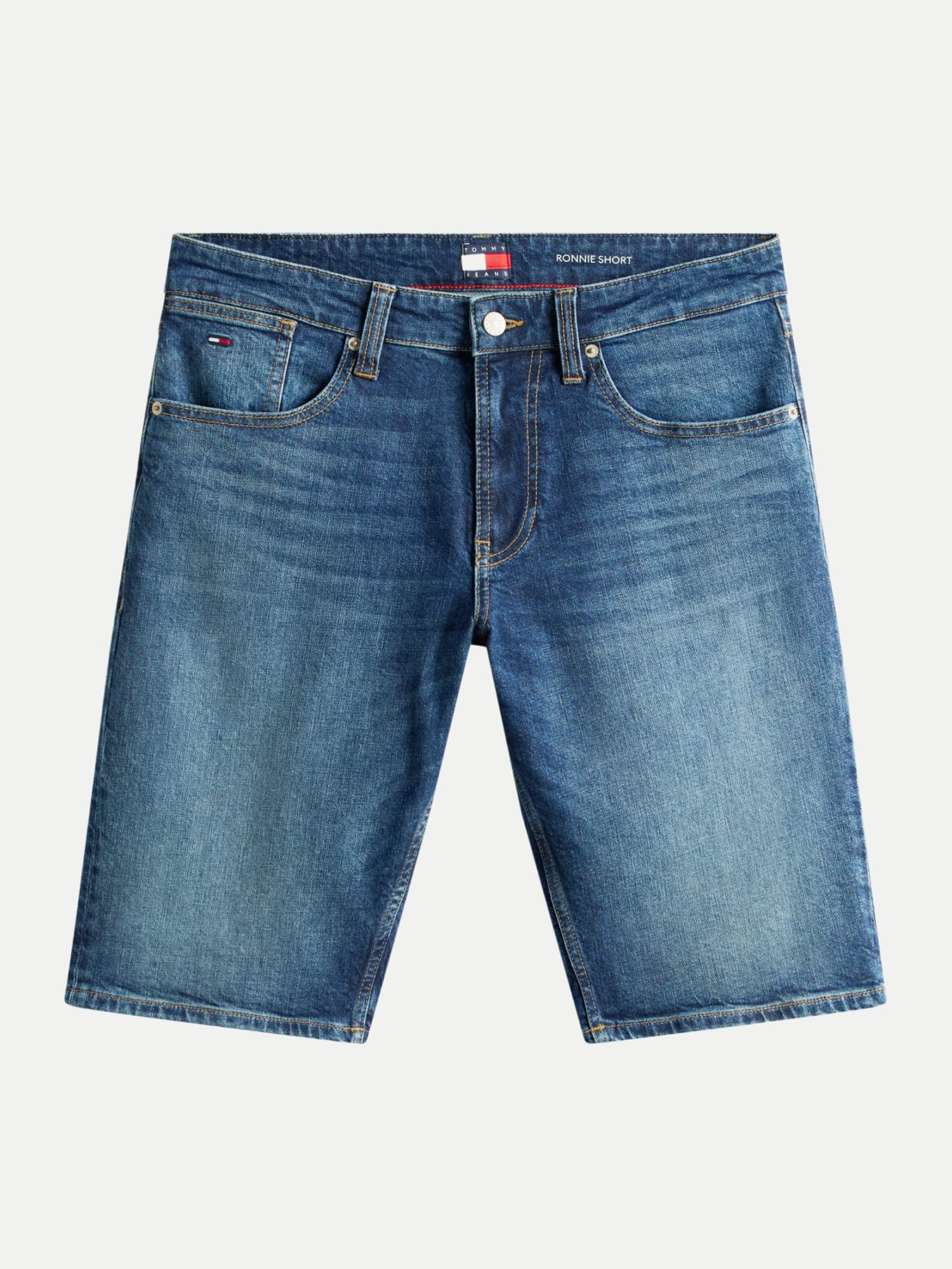 Das Design der Ronnie Shorts zeichnet sich durch klassische Details wie das Whiskering an der Vorderseite und die dezente Färbung auf Vorder- und Rückseite aus, die den Shorts einen leicht abgenutzten und dennoch stilvollen Look verleihen. Die fünf Taschen bieten nicht nur praktischen Stauraum, sondern auch ein traditionelles Jeans-Feeling. Abgerundet wird das Design durch die markanten Metallknöpfe und Nieten sowie das ikonische Tommy Jeans-Branding.