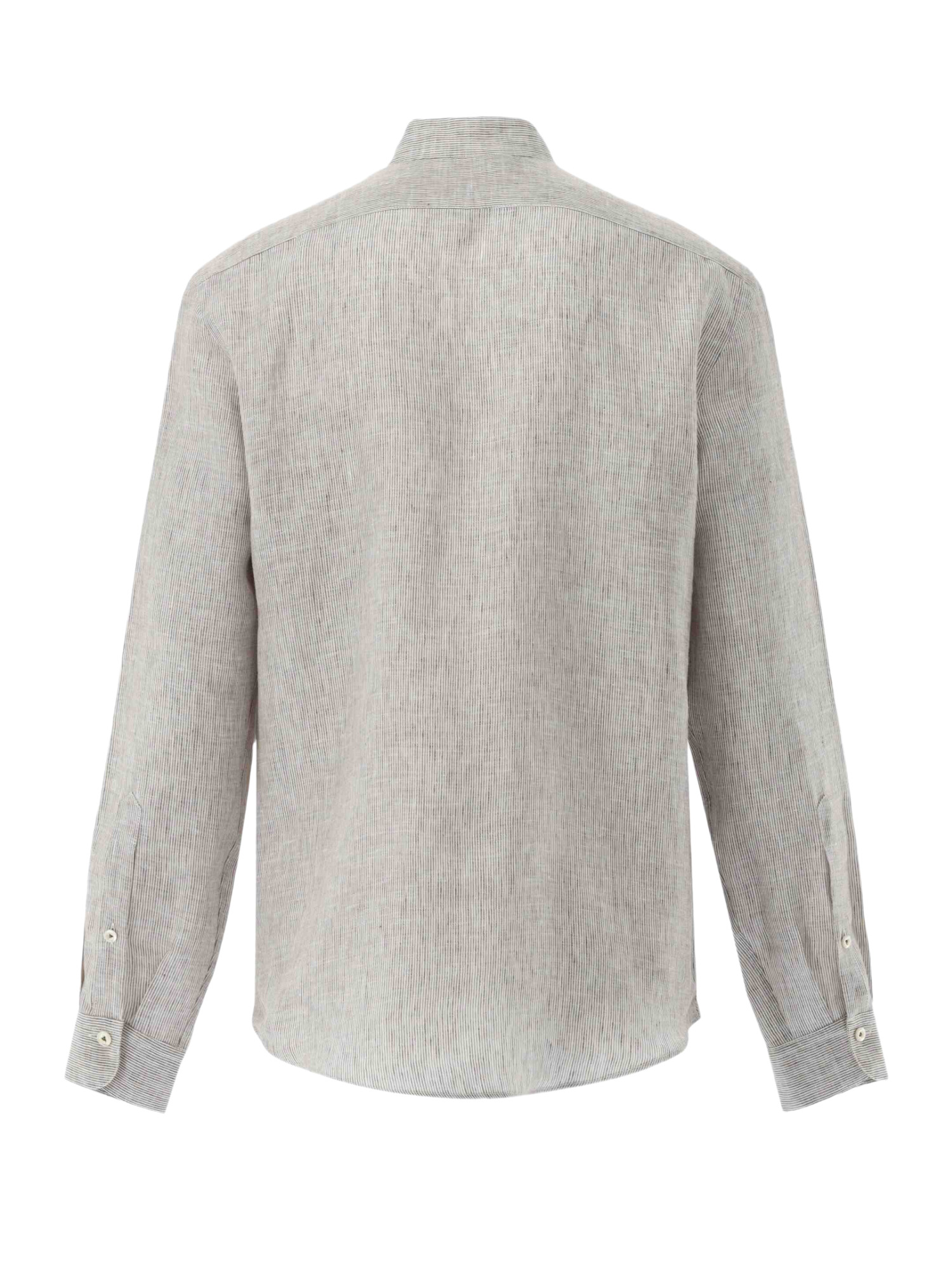 Dieses Hemd ist aus 100% hochwertigem Leinen gefertigt, bekannt für seine hervorragende Luftdurchlässigkeit und kühlenden Eigenschaften. Das gestreifte Muster verleiht eine strukturierte Optik, die sowohl im Büro als auch bei einem entspannten Stadtbummel eine gute Figur macht. Der lange Ärmel endet in einer sportlichen Manschette, die dem Hemd einen modernen Touch verleiht.