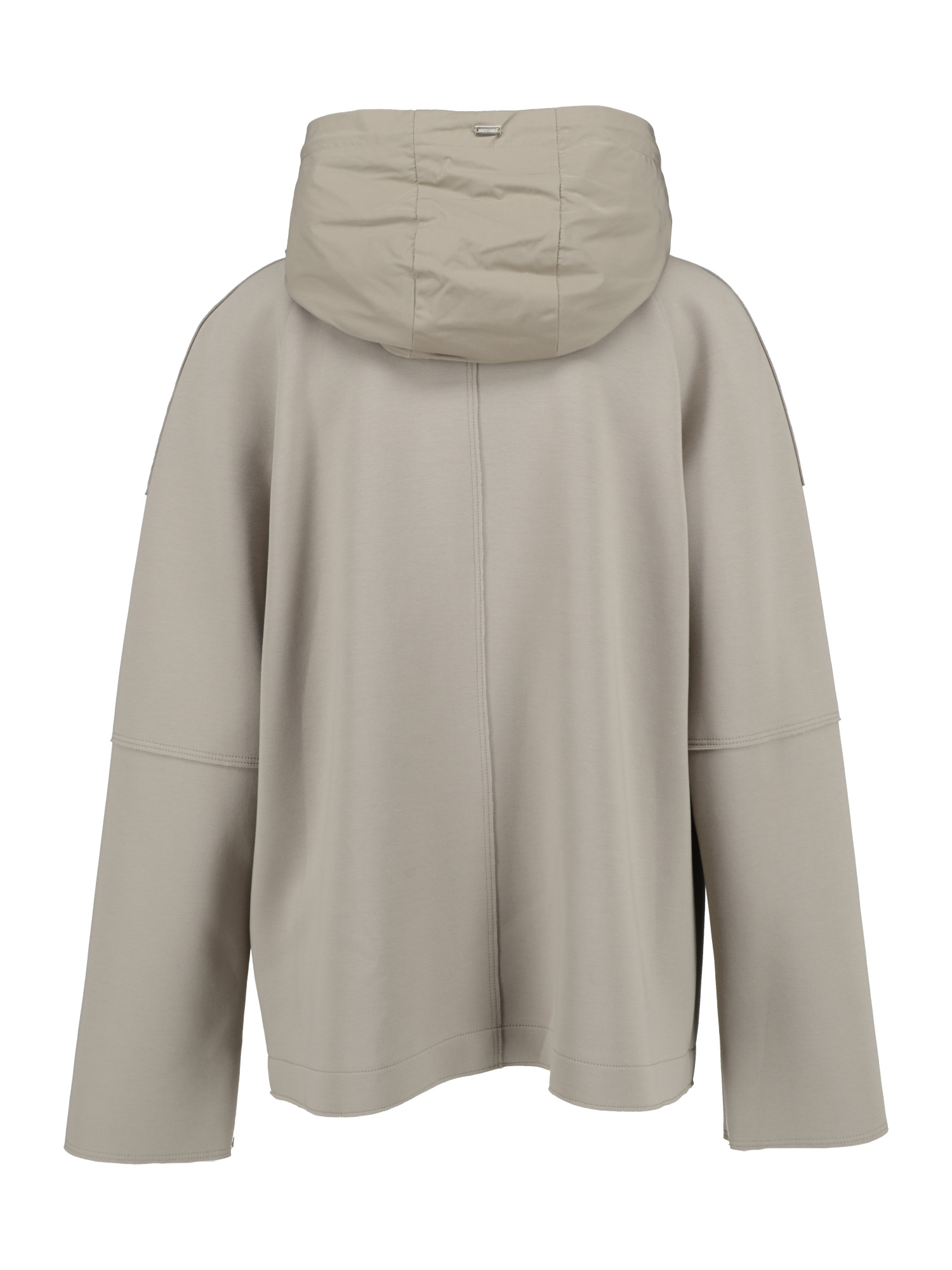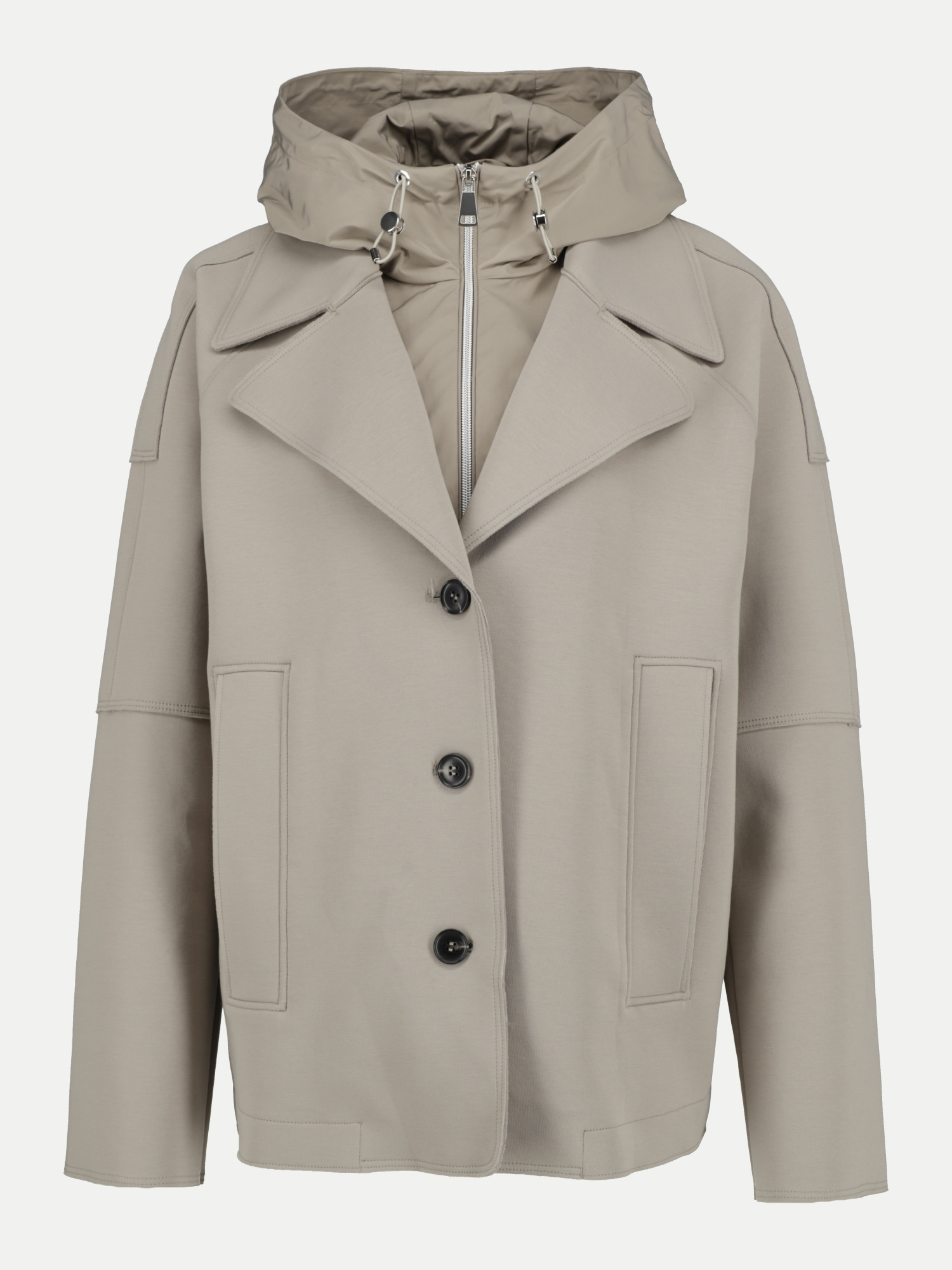 Die Jacke ist aus einer hochwertigen Mischung aus 74% Baumwolle, 21% Polyester und 5% Elasthan gefertigt, was sie besonders bequem macht. Der zweite Kragen und die Kapuze aus 100% Polyester bieten nicht nur zusätzlichen Schutz vor Wind und Wetter, sondern auch einen interessanten, modischen Akzent.
