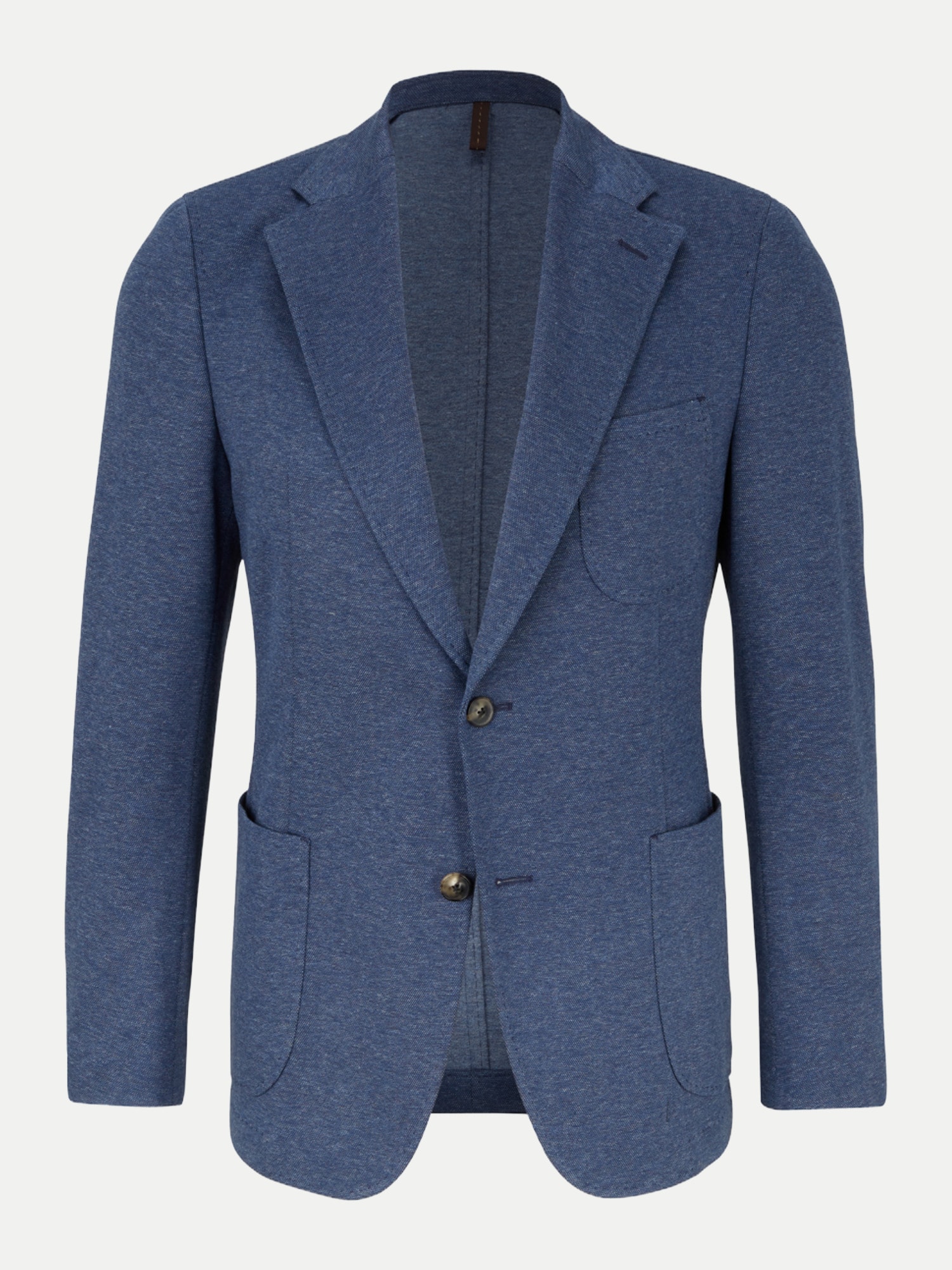 Das Windsor Jersey-Sakko in Blau meliert ist ein eleganter und vielseitiger Begleiter für den Alltag. Es ist aus einer leichten Baumwoll-Mischung hergestellt, die für ein angenehmes Tragegefühl und einen modernen Look sorgt. Reverskragen und Kissing-Buttons setzen klassische Akzente, während aufgesetzte Taschen-Details das Item raffiniert vollenden.
