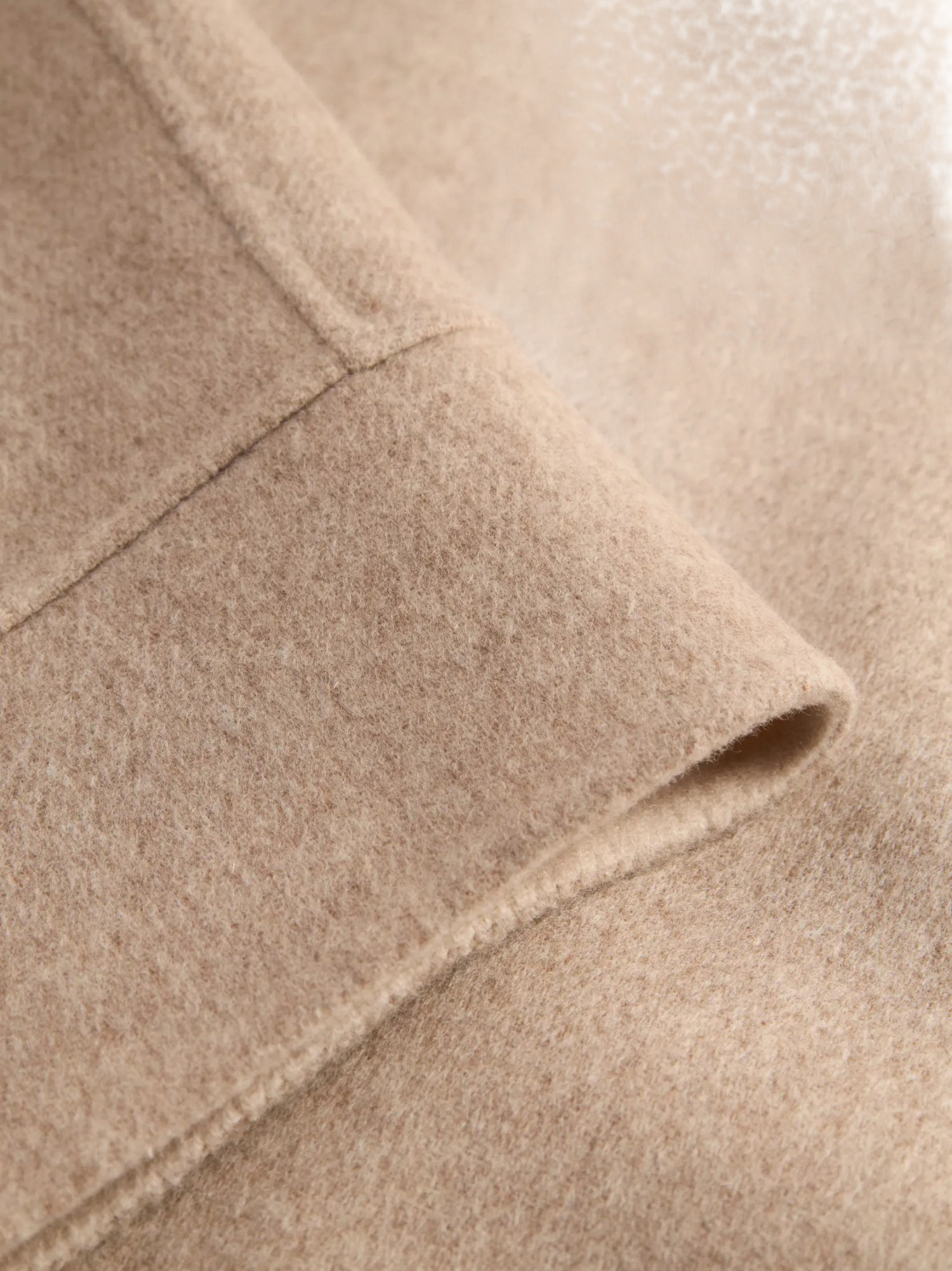 Hergestellt aus 100% Schurwolle, bietet dieser Mantel eine hervorragende Wärme und Komfort. Schurwolle ist bekannt für ihre Atmungsaktivität und Feuchtigkeitsregulierung, was diesen Mantel ideal für die Übergangszeit macht. Zudem ist die Wolle weich auf der Haut und kratzt nicht, was den Tragekomfort erheblich steigert.