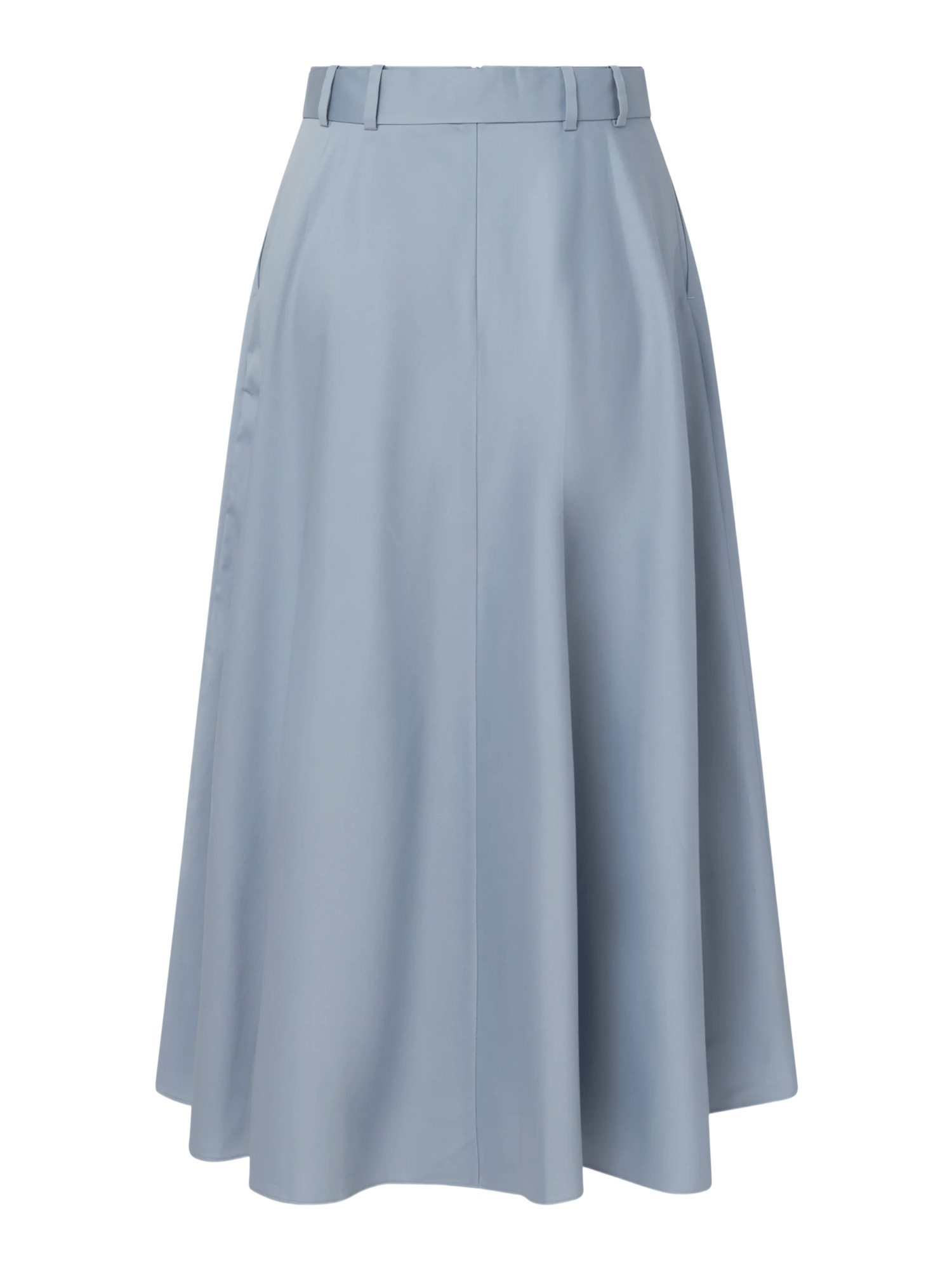 Der rückseitige Zip-Verschluss ermöglicht ein einfaches An- und Ausziehen, während die seitlichen Eingrifftaschen praktisch und stilvoll zugleich sind. Die feine Nahtverarbeitung und der paspelierte Saumabschluss unterstreichen die hohe Qualität dieses Midirocks. Ob zu einem schlichten T-Shirt oder einer eleganten Bluse kombiniert – dieser Rock ist ein echter Allrounder.