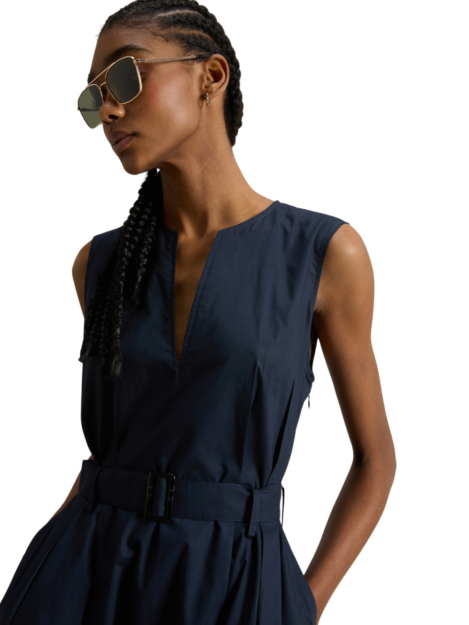 Dieses ärmellose Kleid ist aus 100% hochwertiger Baumwolle gefertigt, die sich sanft an Deine Haut schmiegt und für eine optimale Atmungsaktivität sorgt. Der fließende Stoff umspielt charmant Deine Figur und bietet Dir den ganzen Tag über ein angenehmes Tragegefühl.