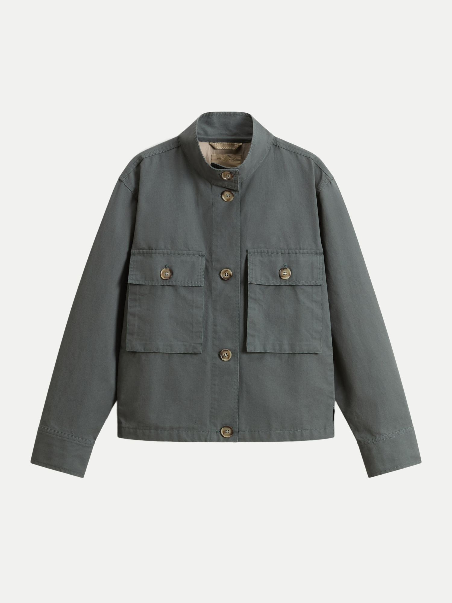 Das Overshirt ist aus 100% reinem Baumwoll-Canvas gefertigt und hat eine spezielle Waschbehandlung erfahren, die es besonders weich macht. Der angenehme Used-Look und das Gefühl, als wäre es schon immer ein Teil Deiner Garderobe gewesen, machen es besonders charmant. Der hohe Stehkragen und die durchdachte Knopfleiste sorgen für eine klare, modische Linie.