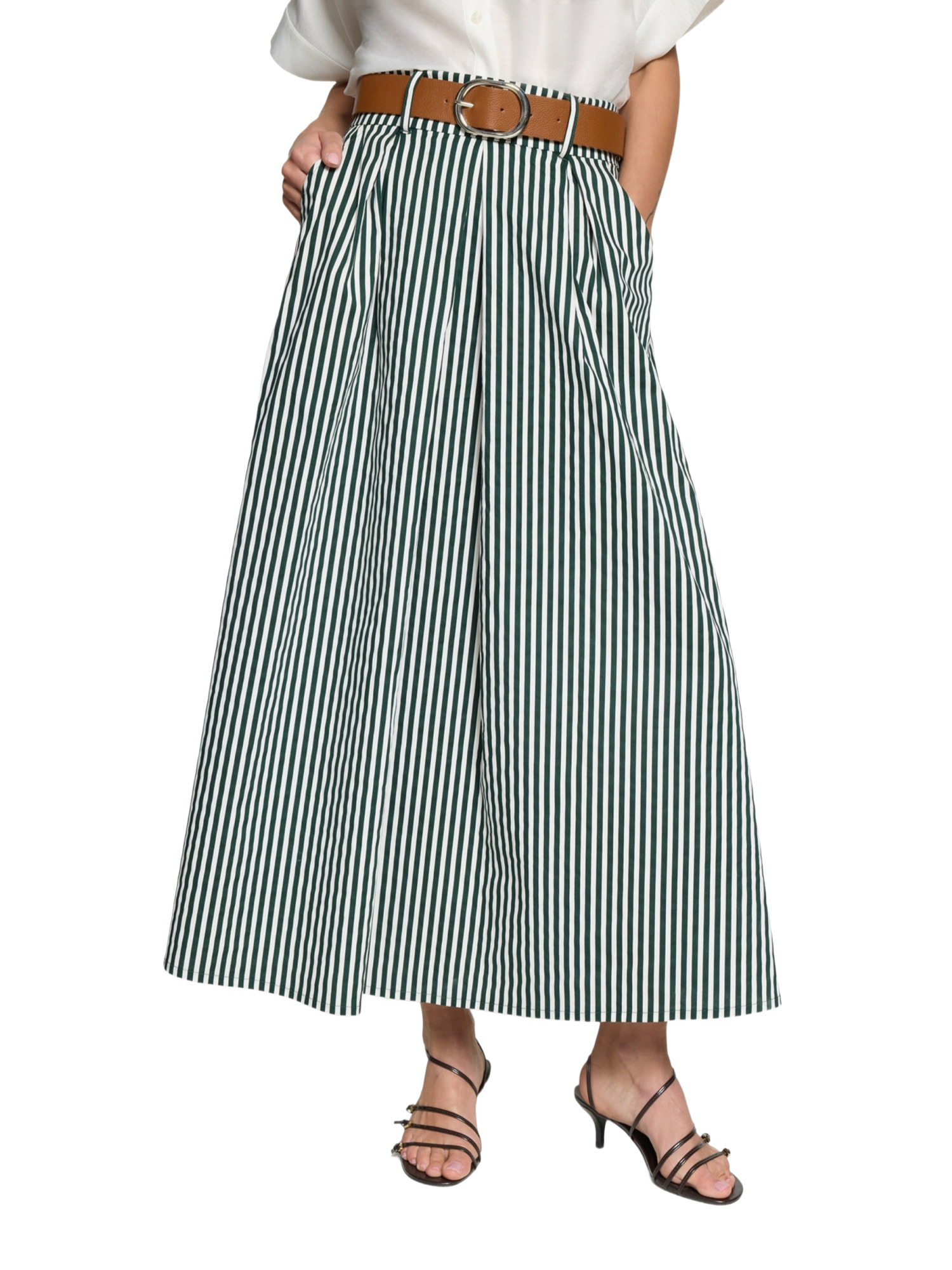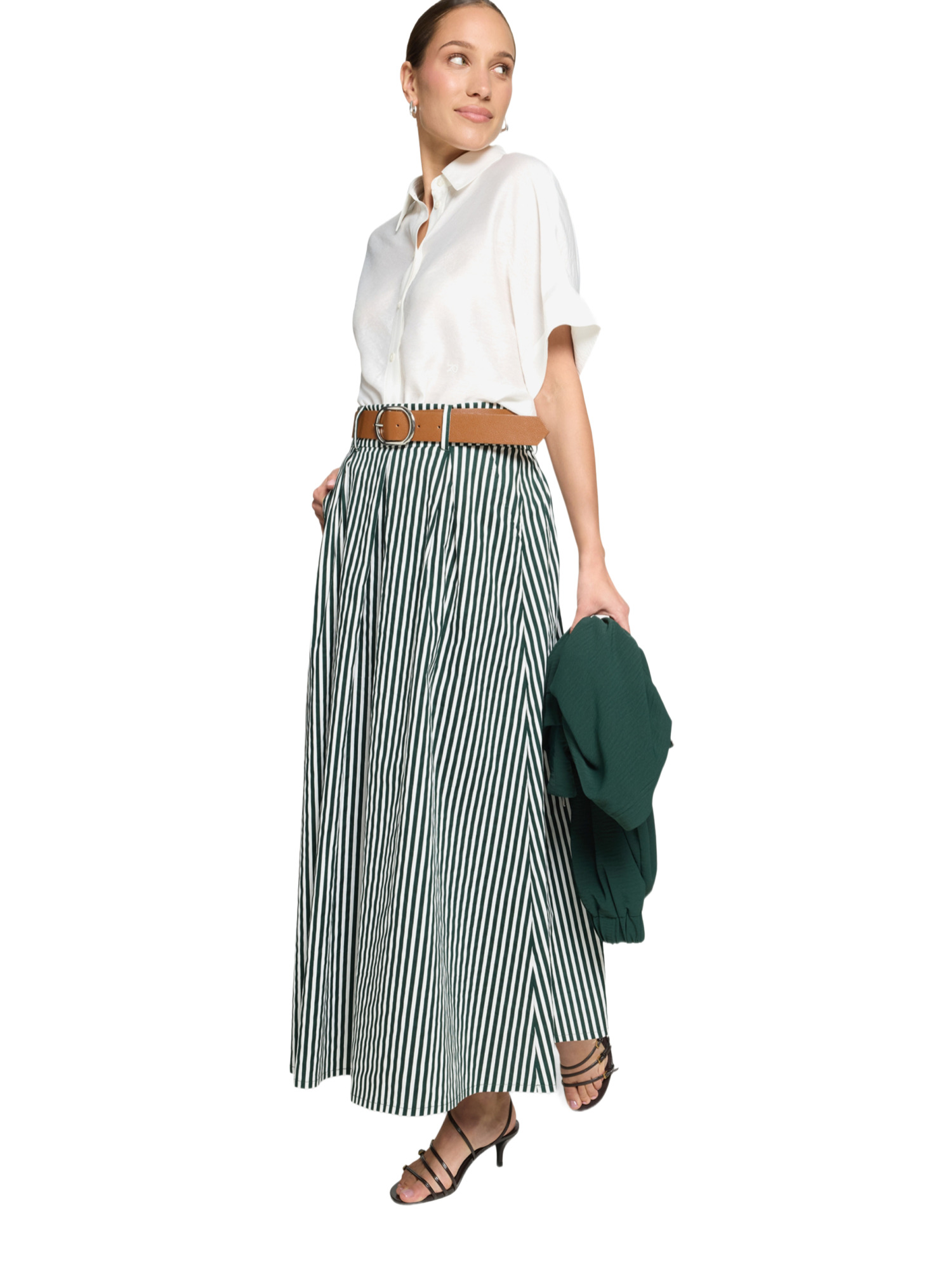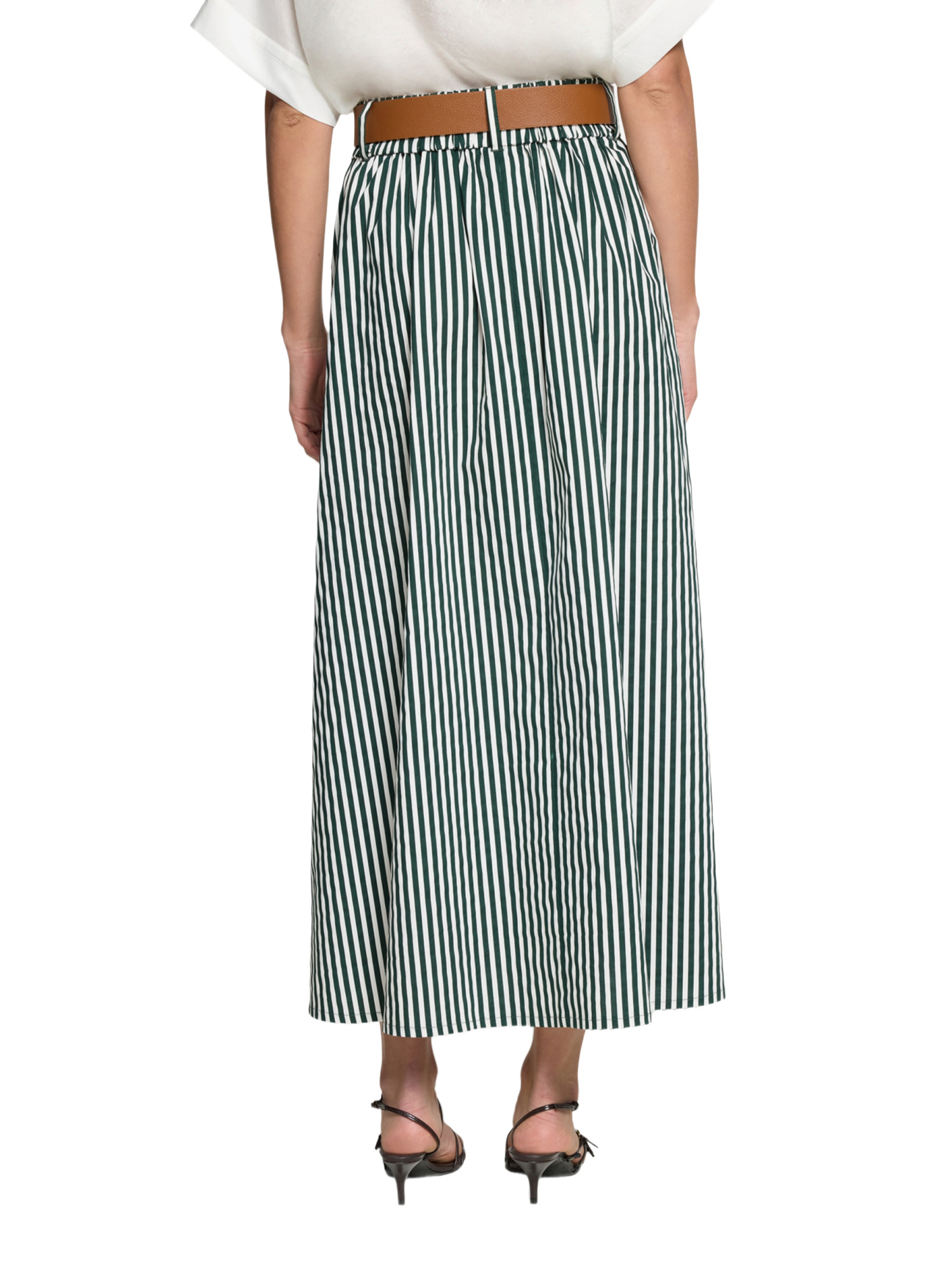 Der Schnitt des Rocks ist ideal, um Deine Figur zu umschmeicheln, ohne einzuengen. Die leichte A-Linie und der fließende Fall des Stoffes betonen Deine Silhouette auf natürliche Weise. Der Casual-Look des Rocks macht ihn zum perfekten Begleiter für Deinen Alltag.