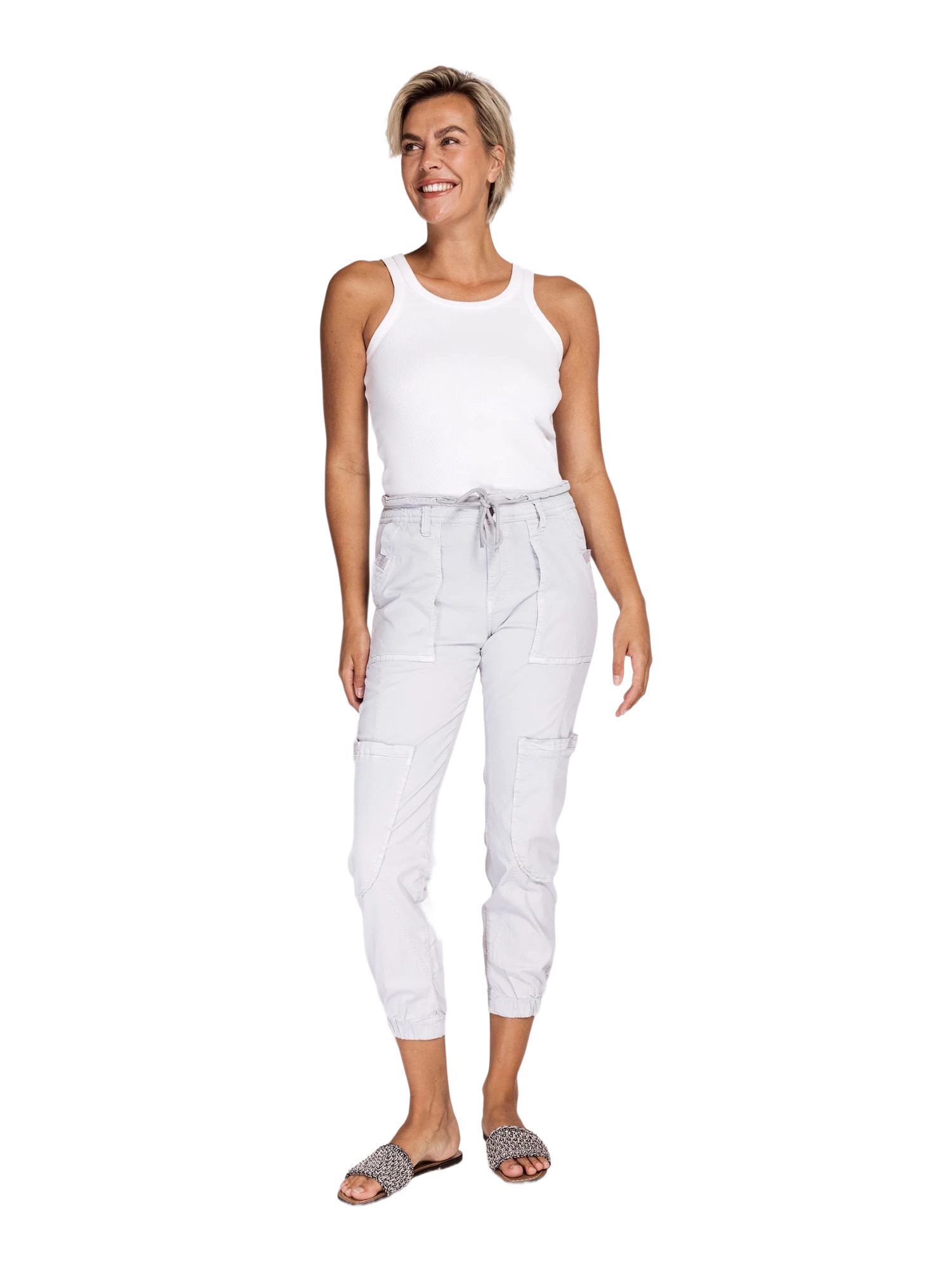 Die ZHFINNA ist aus einer hochwertigen Mischung aus 67% Baumwolle, 30% Tencel und 3% Elasthan gefertigt, was ihr eine angenehme Elastizität verleiht. Die schmal zulaufende Tapered-Passform kombiniert mit einer verkürzten 7/8-Länge schmeichelt jeder Figur und betont die Beine auf elegante Weise. Der elastische Bund mit Tunnelzug verspricht zudem einen optimalen Sitz ohne Einengen.