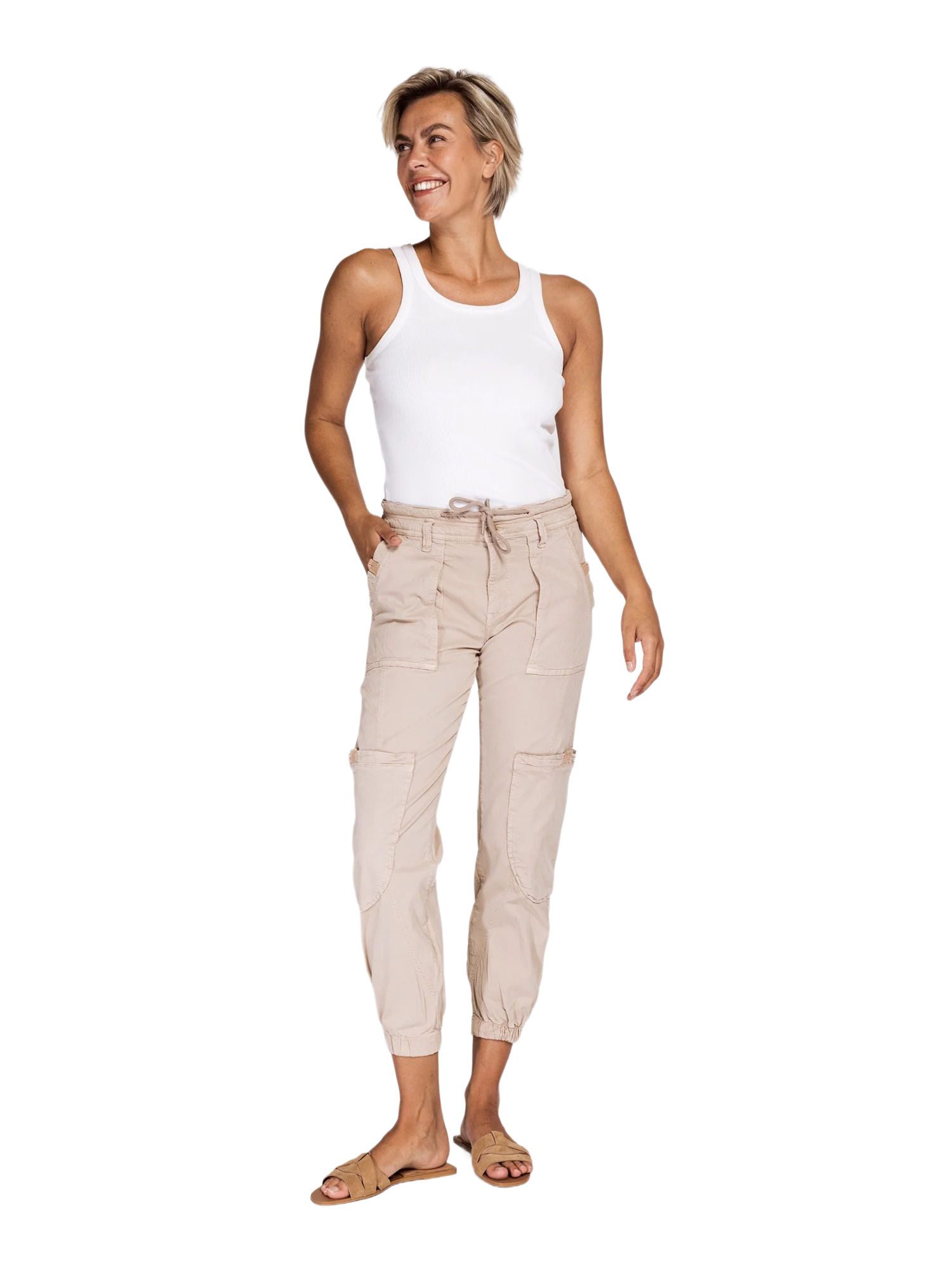 Neben dem stilvollen Design bietet die Hose praktische aufgesetzte Taschen, die nicht nur gut aussehen, sondern auch praktisch sind. Die klare, sportiv geprägte Linienführung unterstreicht den modernen Charakter dieser Hose und macht sie zu einem Must-have für modebewusste Frauen.