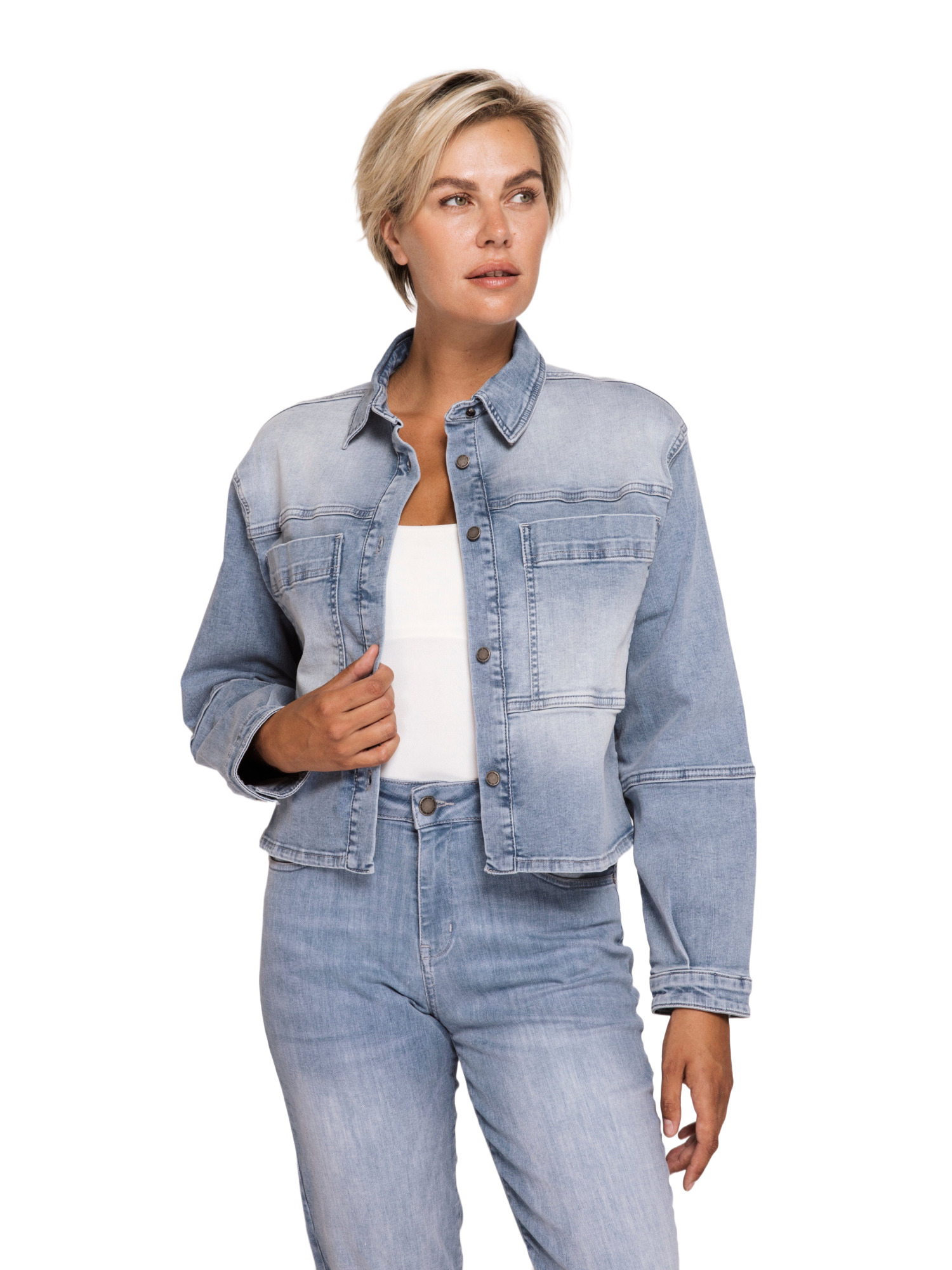 Die ZHLOUIE ist mehr als nur eine Jeansjacke. Ihr regular Fit und der kurze Schnitt schmeicheln jeder Figur und bieten optimalen Tragekomfort. Ob über einem sommerlichen Kleid oder kombiniert mit Deiner Lieblingsjeans – diese Jacke passt sich mühelos jedem Outfit an.